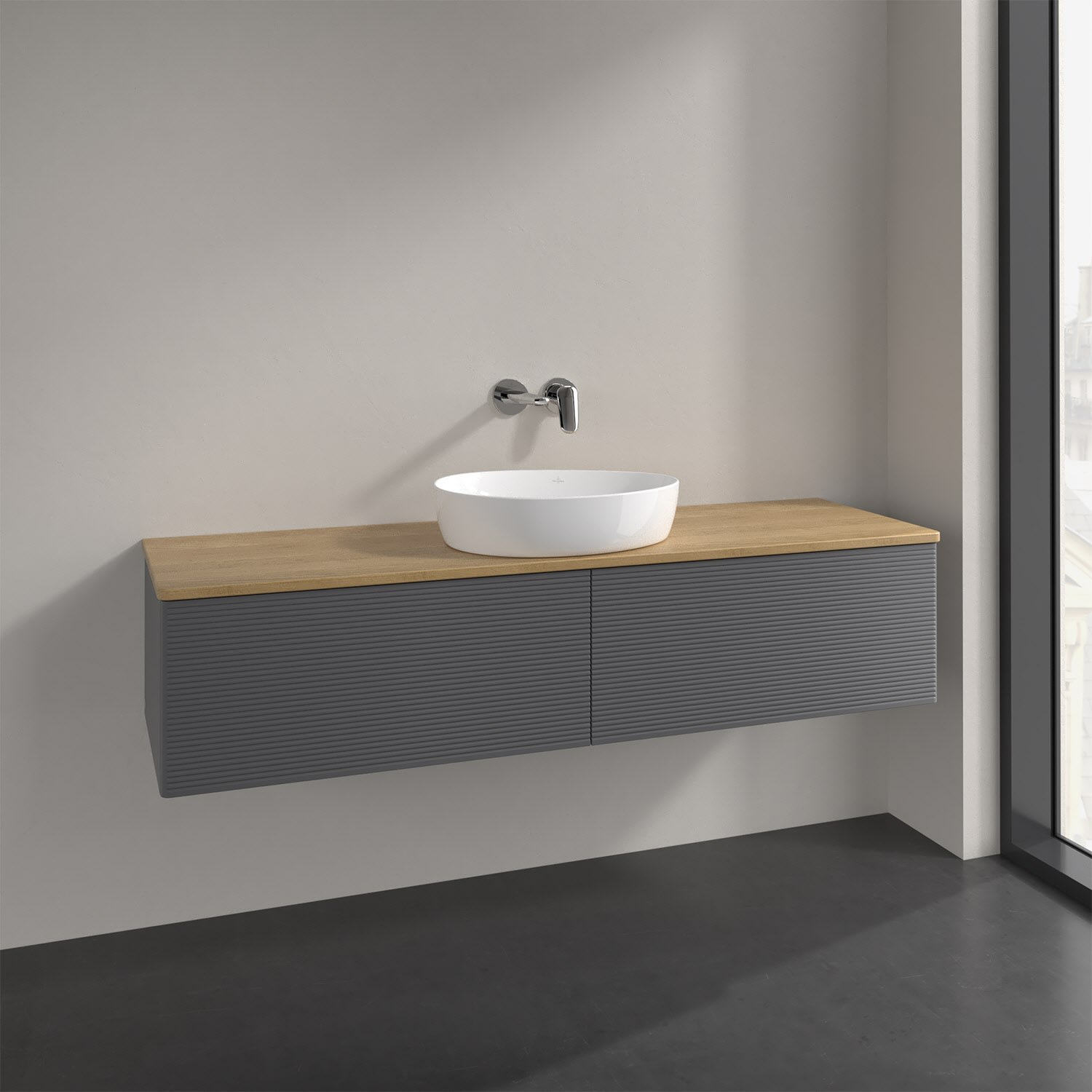 Villeroy & Boch Antao Waschbeckenunterschrank, 160 x 36 cm, 2 Auszüge, Front mit Struktur, ohne Hahnloch, für Waschtisch mittig