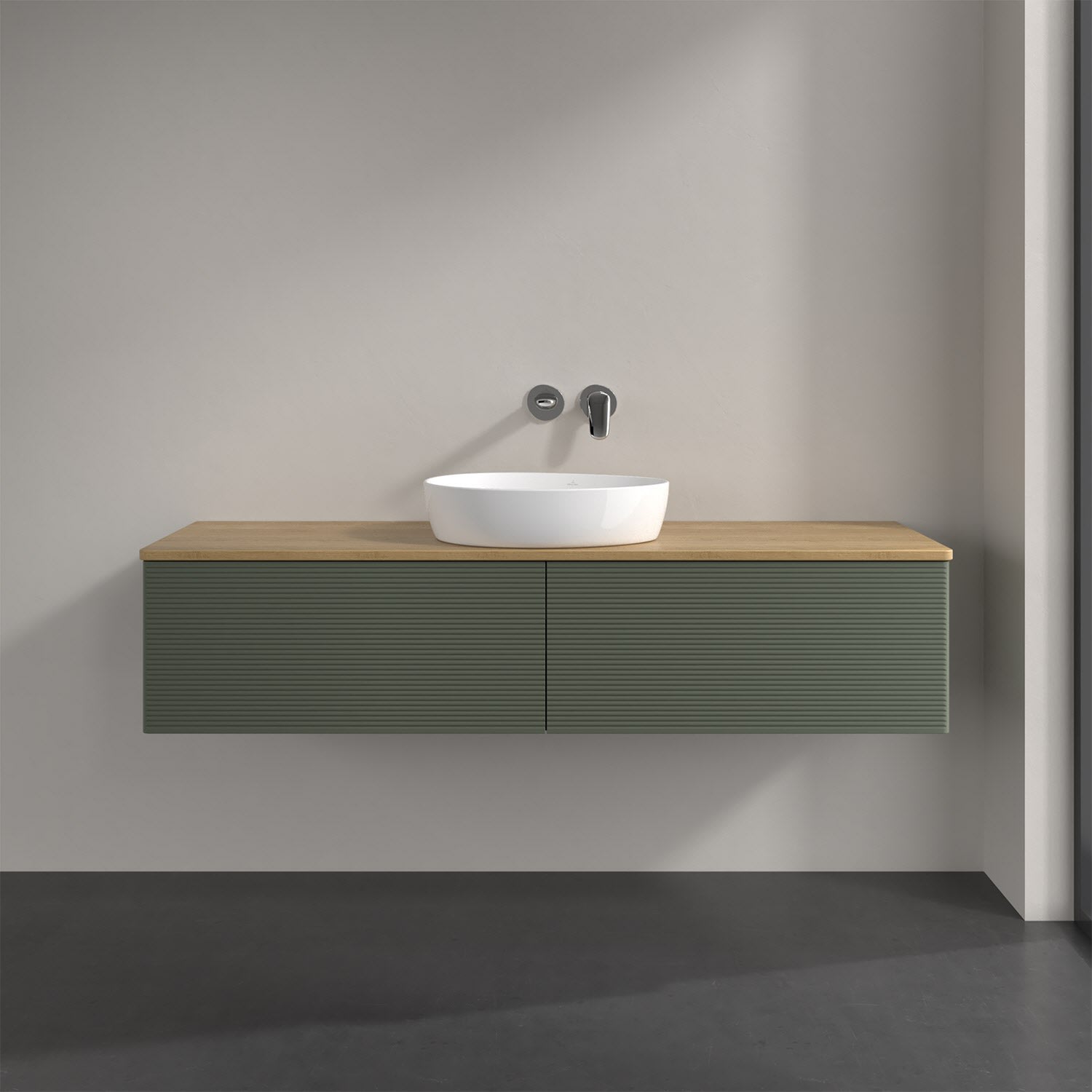 Der wandhängende Antao Waschtischunterschrank bietet mit seinen beiden extra hohen Auszügen und seiner erstaunlichen Größe viel Platz zum Verstauen von Utensilien im Badezimmer. Dank des mittig platzierten Aufsatzwaschtischs gibt es seitlich weiteren Platz für Handtücher, Seifenspender & Co. auf der Waschtischplatte. Inspiriert von der Natur überzeugt der Unterschrank auch optisch mit sanfter Formsprache und abgerundete Kanten. Die grifflosen Auszüge mit strukturierter Front sind mit der Push-to-Open Funktion ausgestattet und verfügen über einen Antirutschboden, damit Utensilien sicher verstaut werden können. Mit seiner Vollauszug- und Selbsteinzug-Funktion ist der Schrank praktisch und leicht zu bedienen. Qualität von Villeroy & Boch! Für eine besonders leichte Pflege sorgt die mehrschichtig deckend lackierte Oberfläche. Bei der Ausführung in Massivholz wird dank des verarbeiteten Massivholzes jedes Möbel zu einem Unikat, das sich durch das lebendige Naturmaterial durch seine einzigartige Struktur und Maserung auszeichnet.