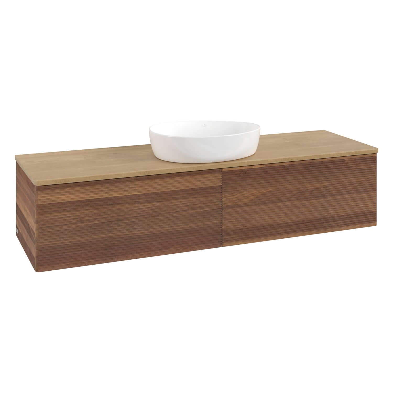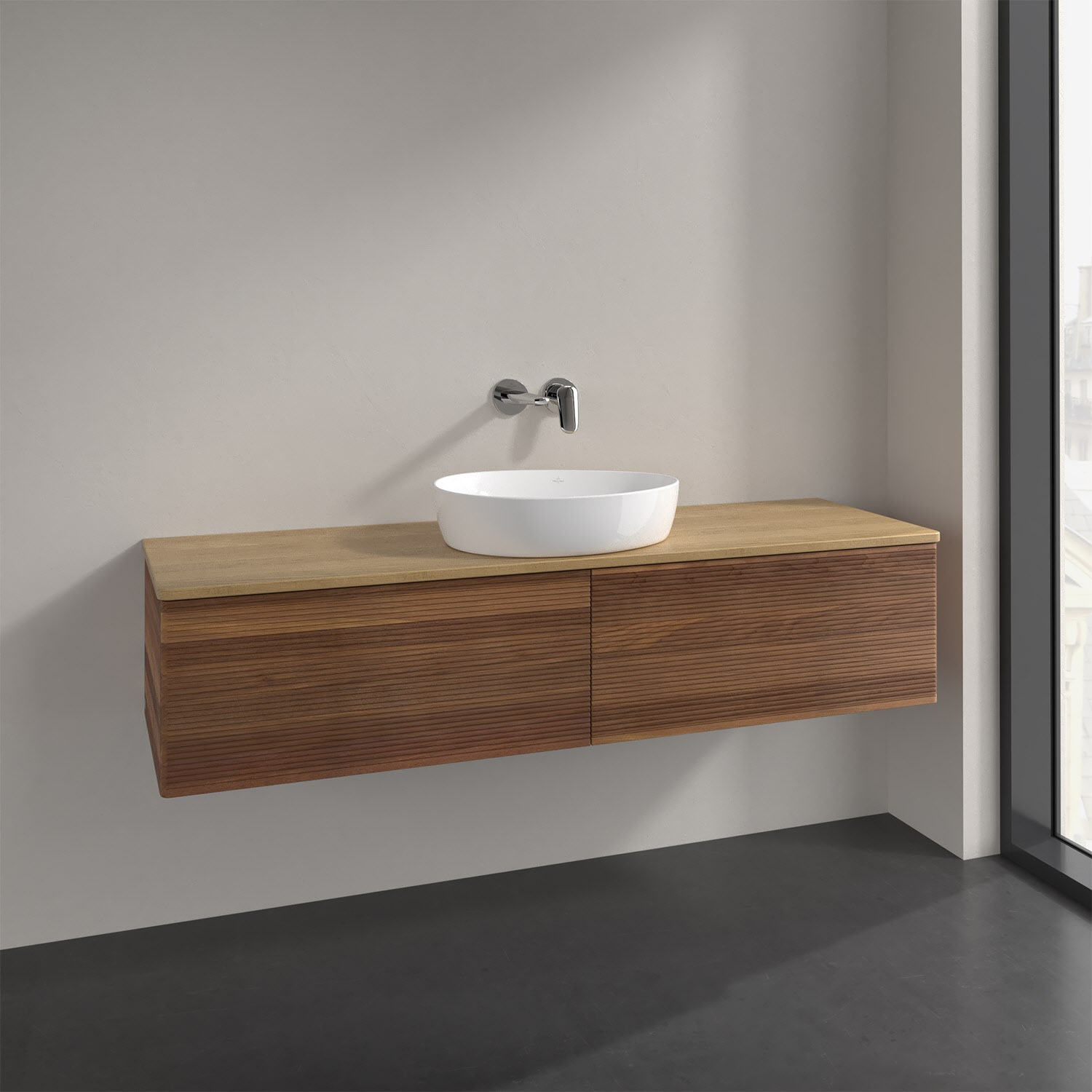 Villeroy & Boch Antao Waschbeckenunterschrank, 160 x 36 cm, 2 Auszüge, Front mit Struktur, ohne Hahnloch, für Waschtisch mittig