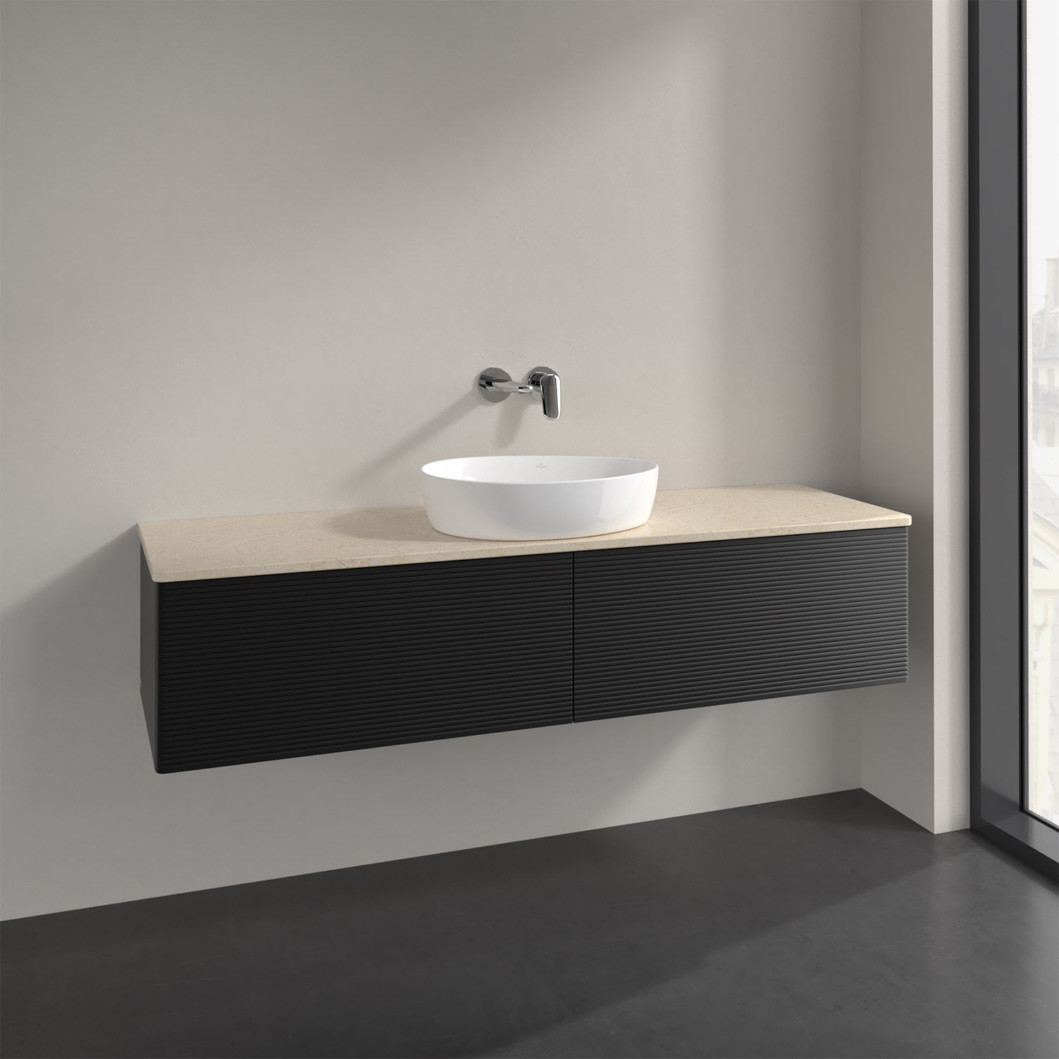 Villeroy & Boch Antao Waschbeckenunterschrank, 160 x 36 cm, 2 Auszüge, Front mit Struktur, ohne Hahnloch, für Waschtisch mittig