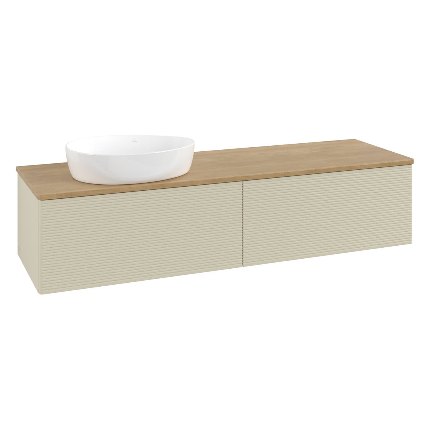 Villeroy & Boch Antao Waschbeckenunterschrank, 160 x 36 cm, 2 Auszüge, Front mit Struktur, ohne Hahnloch, für Waschtisch links