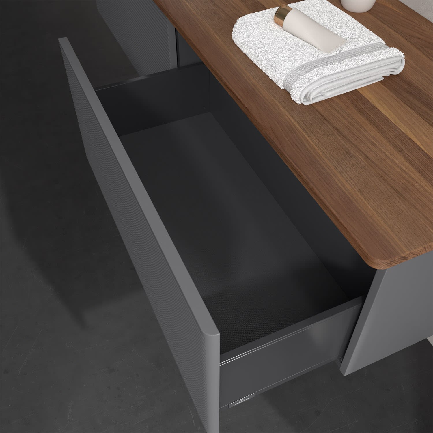 Villeroy & Boch Antao Waschbeckenunterschrank, 160 x 36 cm, 2 Auszüge, Front mit Struktur, ohne Hahnloch, für Waschtisch links