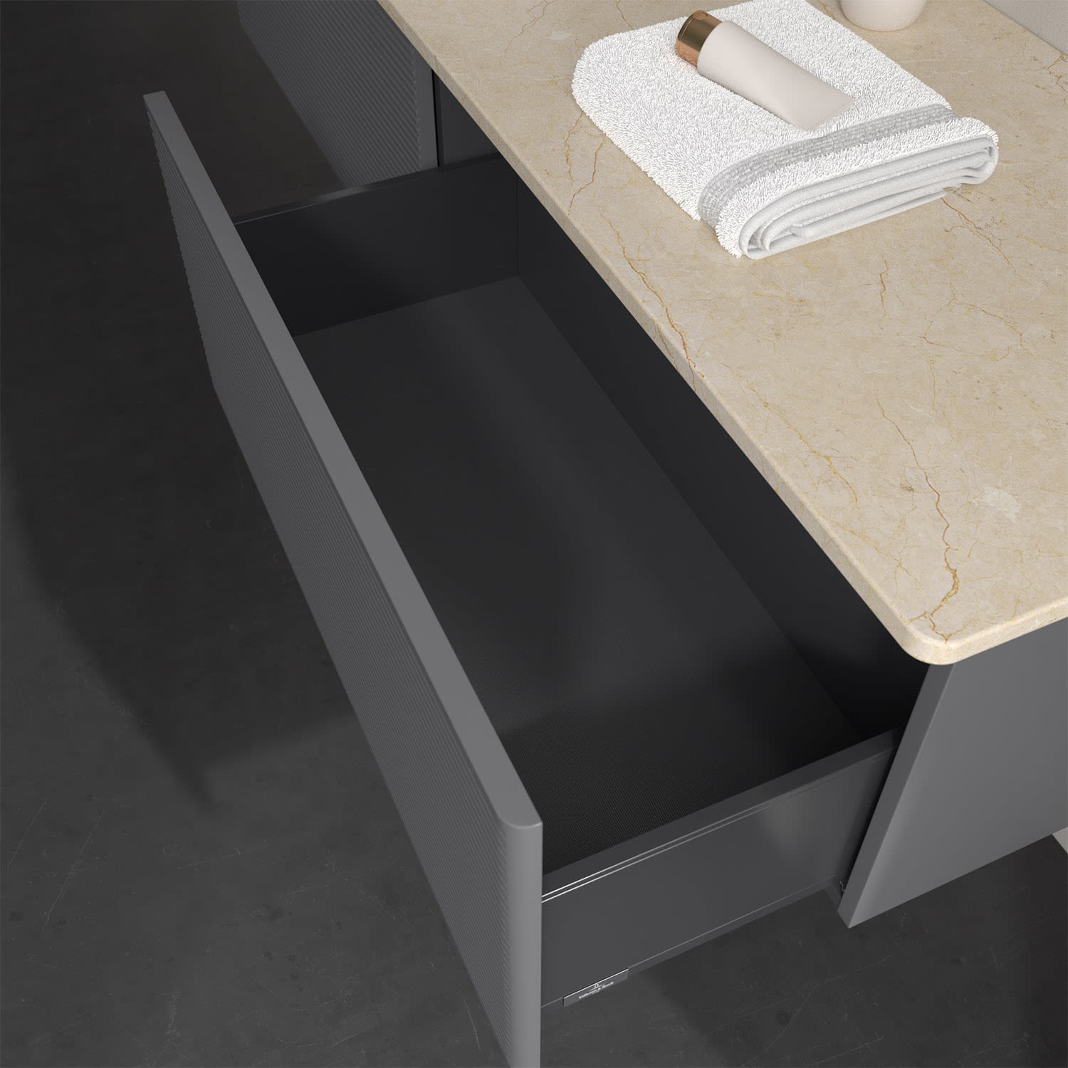 Villeroy & Boch Antao Waschbeckenunterschrank, 160 x 36 cm, 2 Auszüge, Front mit Struktur, ohne Hahnloch, für Waschtisch links
