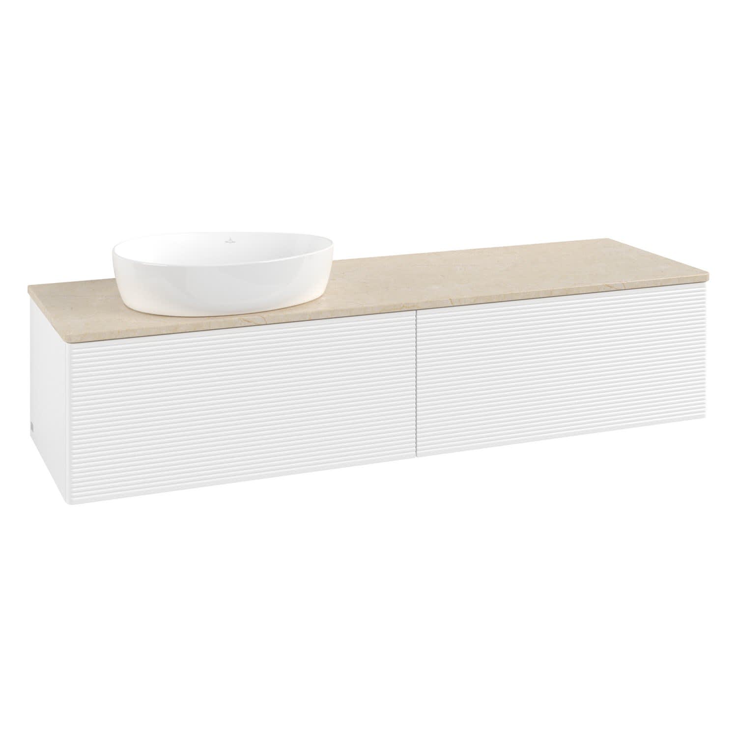 Villeroy & Boch Antao Waschbeckenunterschrank, 160 x 36 cm, 2 Auszüge, Front mit Struktur, ohne Hahnloch, für Waschtisch links