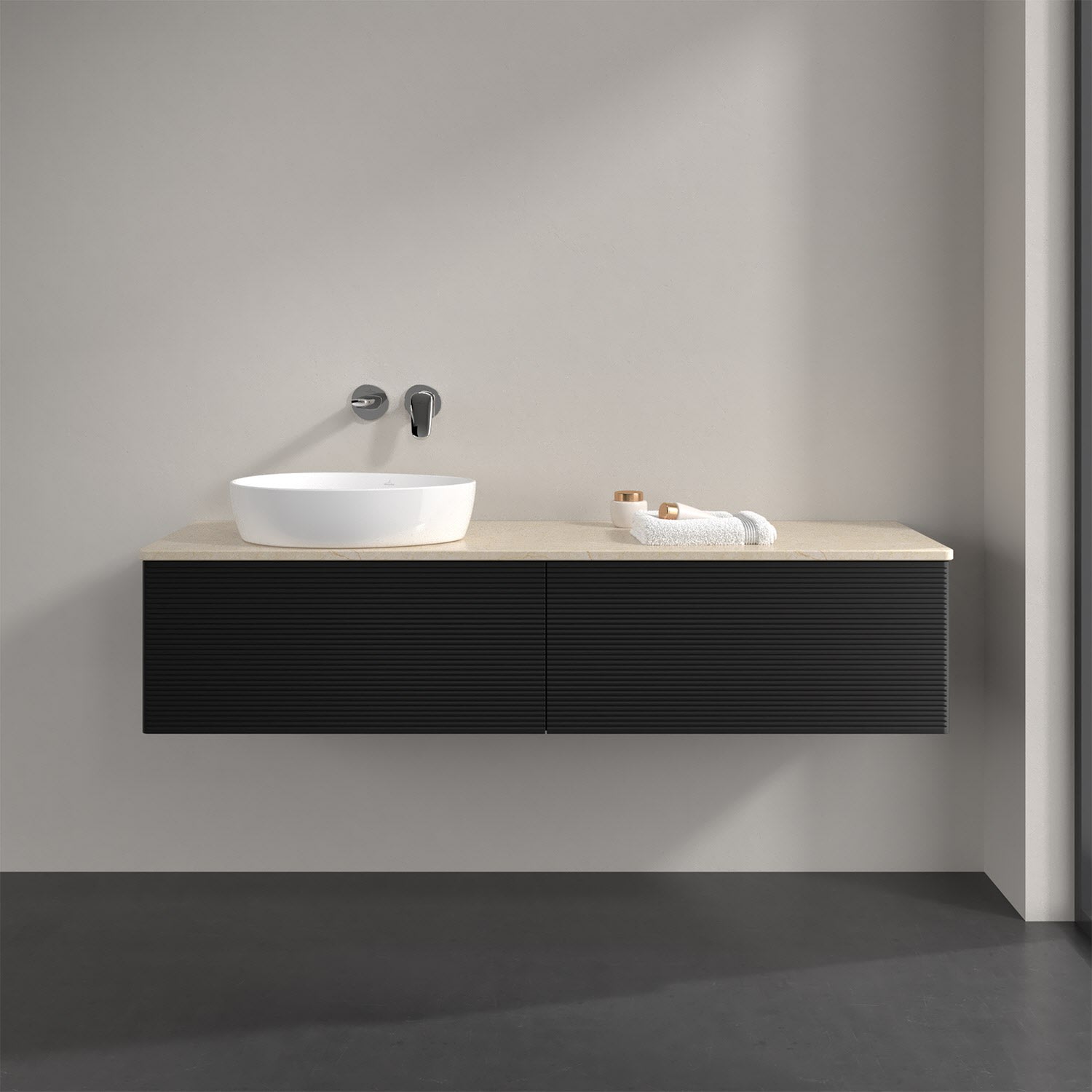 Villeroy & Boch Antao Waschbeckenunterschrank, 160 x 36 cm, 2 Auszüge, Front mit Struktur, ohne Hahnloch, für Waschtisch links