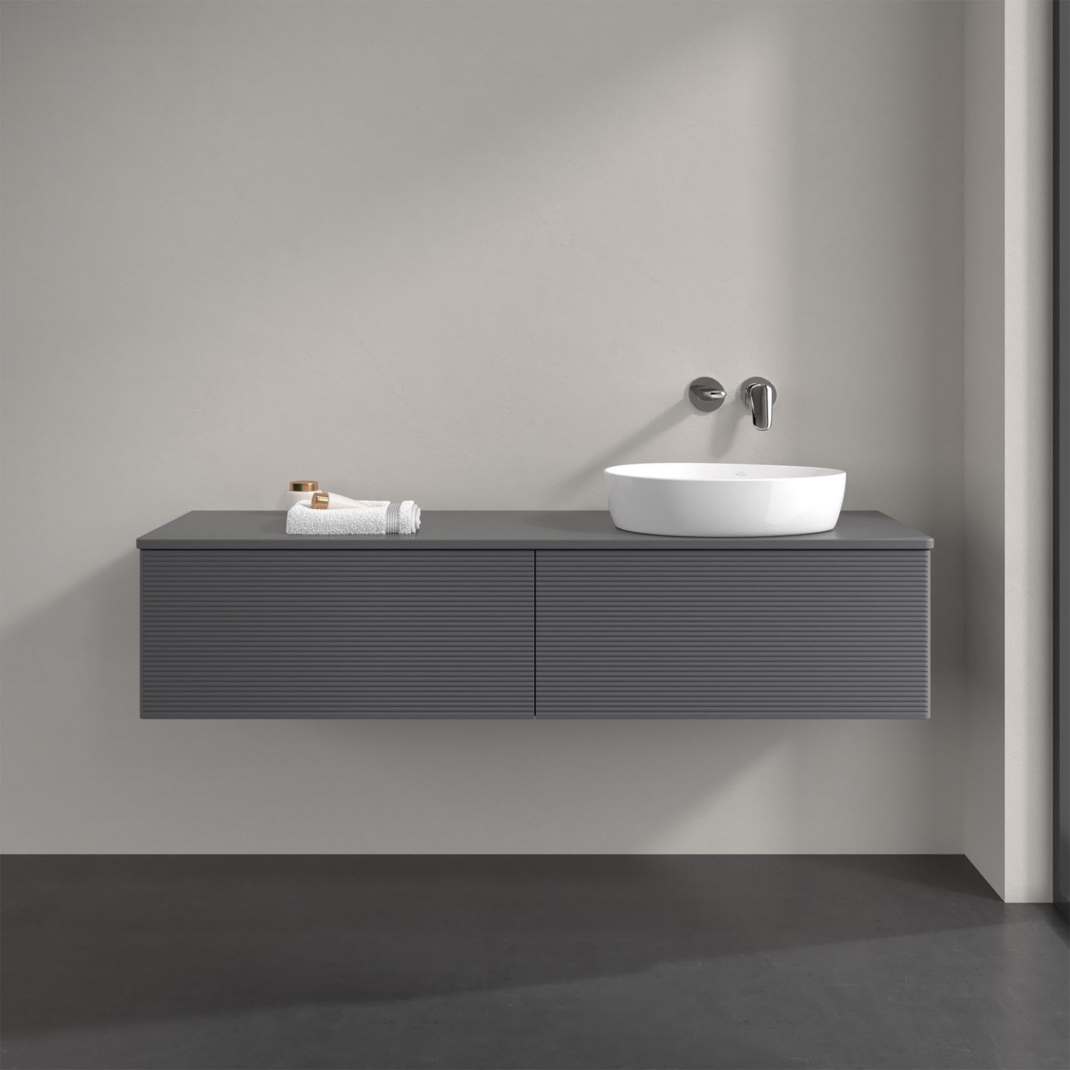 Villeroy & Boch Antao Waschbeckenunterschrank, 160 x 36 cm, 2 Auszüge, Front mit Struktur, ohne Hahnloch, für Waschtisch rechts