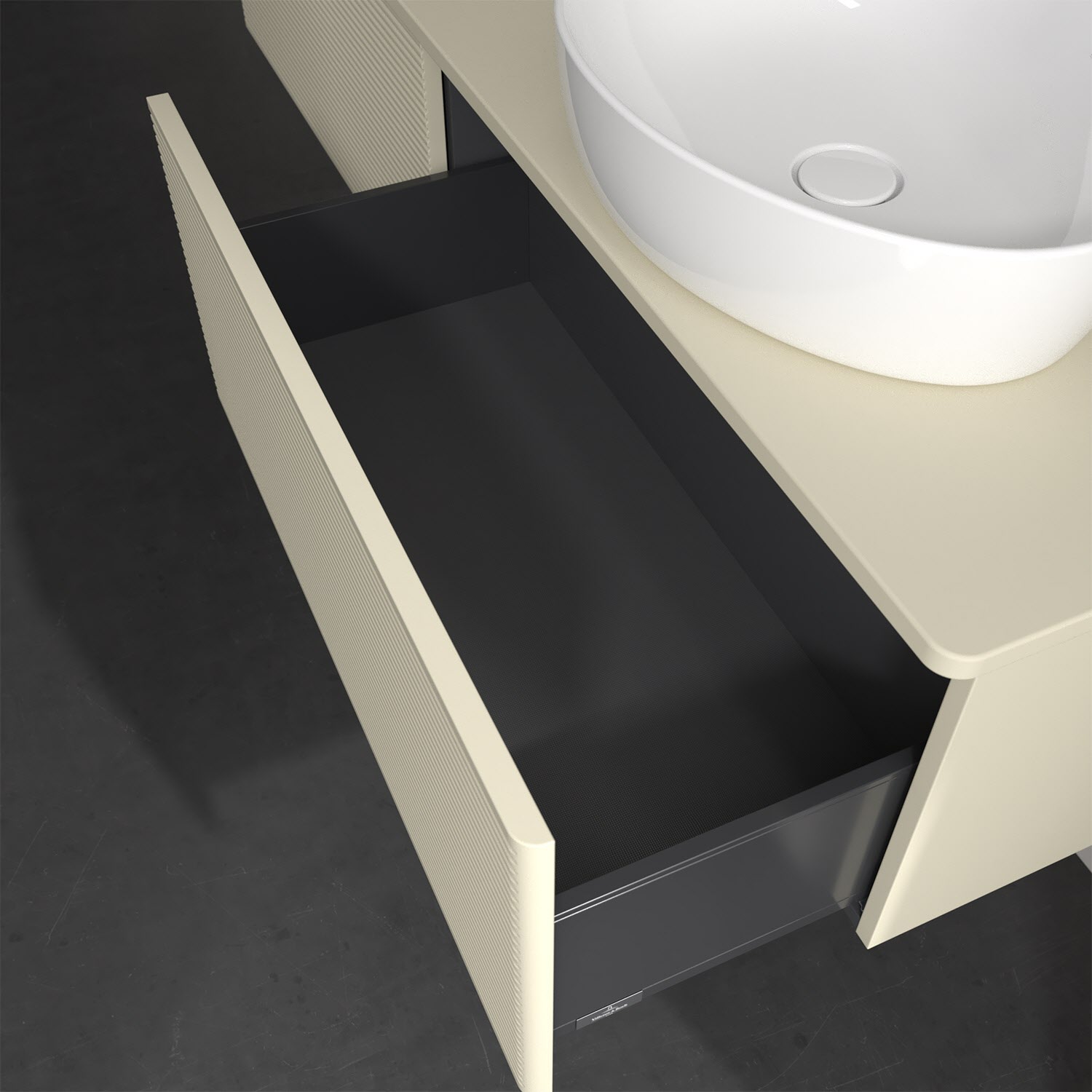 Villeroy & Boch Antao Waschbeckenunterschrank, 160 x 36 cm, 2 Auszüge, Front mit Struktur, ohne Hahnloch, für Waschtisch rechts