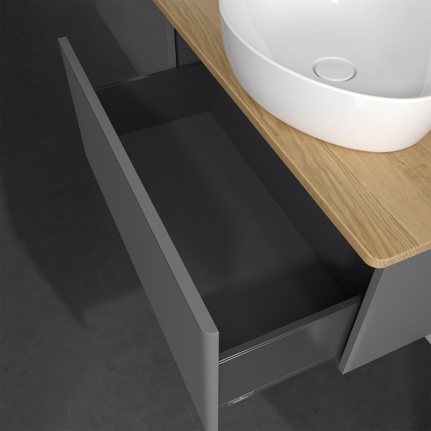 - kein Umfallen oder Verrutschen von Pflegeprodukten in den Schubladen dank rutschhemmendem Boden