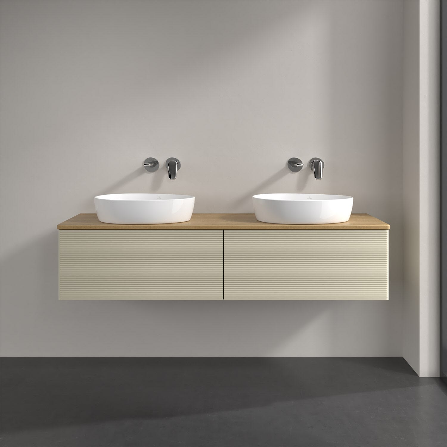 Villeroy & Boch Antao Waschbeckenunterschrank, 160 x 36 cm, 2 Auszüge, Front mit Struktur, ohne Hahnloch, für Waschtisch links und rechts