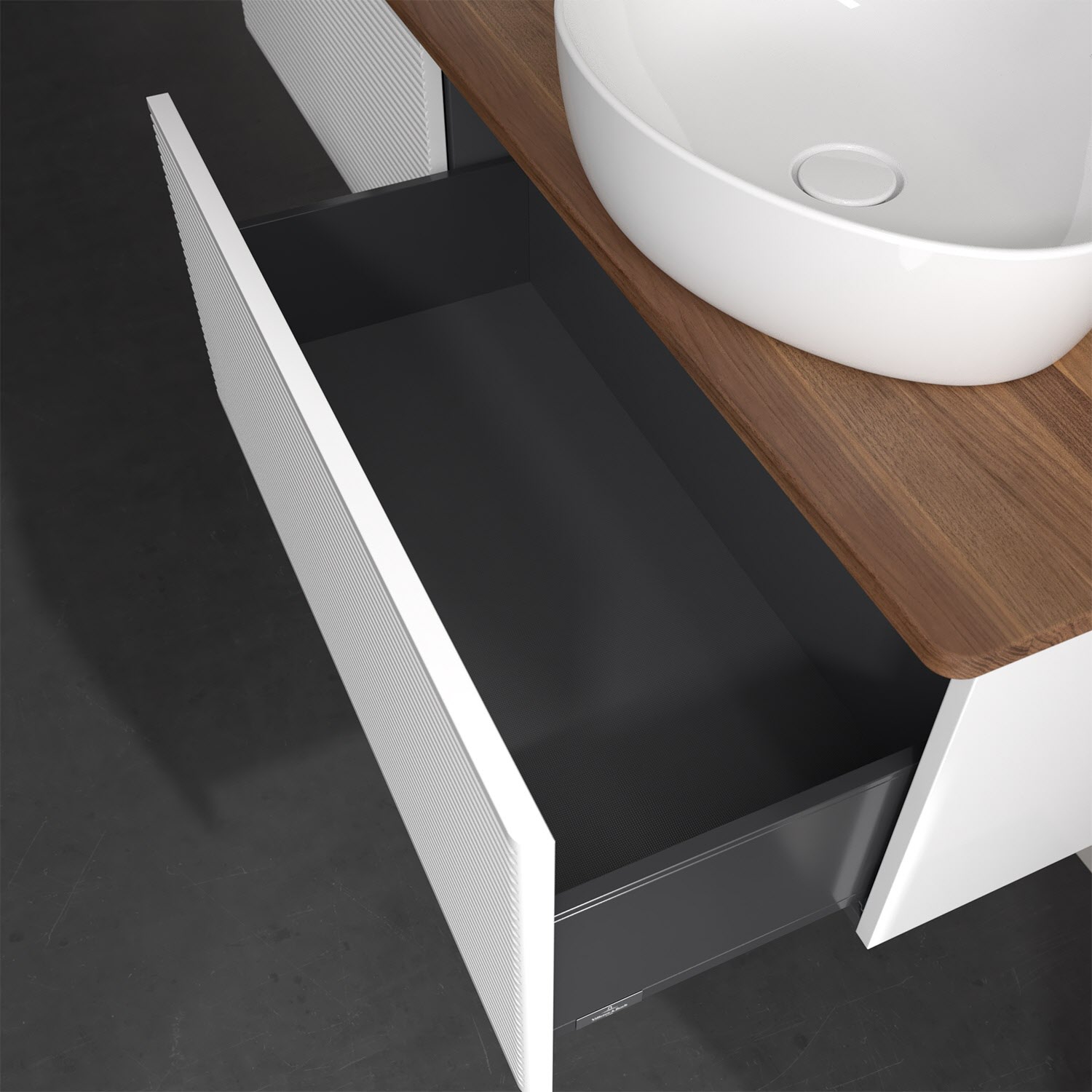 Villeroy & Boch Antao Waschbeckenunterschrank, 160 x 36 cm, 2 Auszüge, Front mit Struktur, ohne Hahnloch, für Waschtisch links und rechts