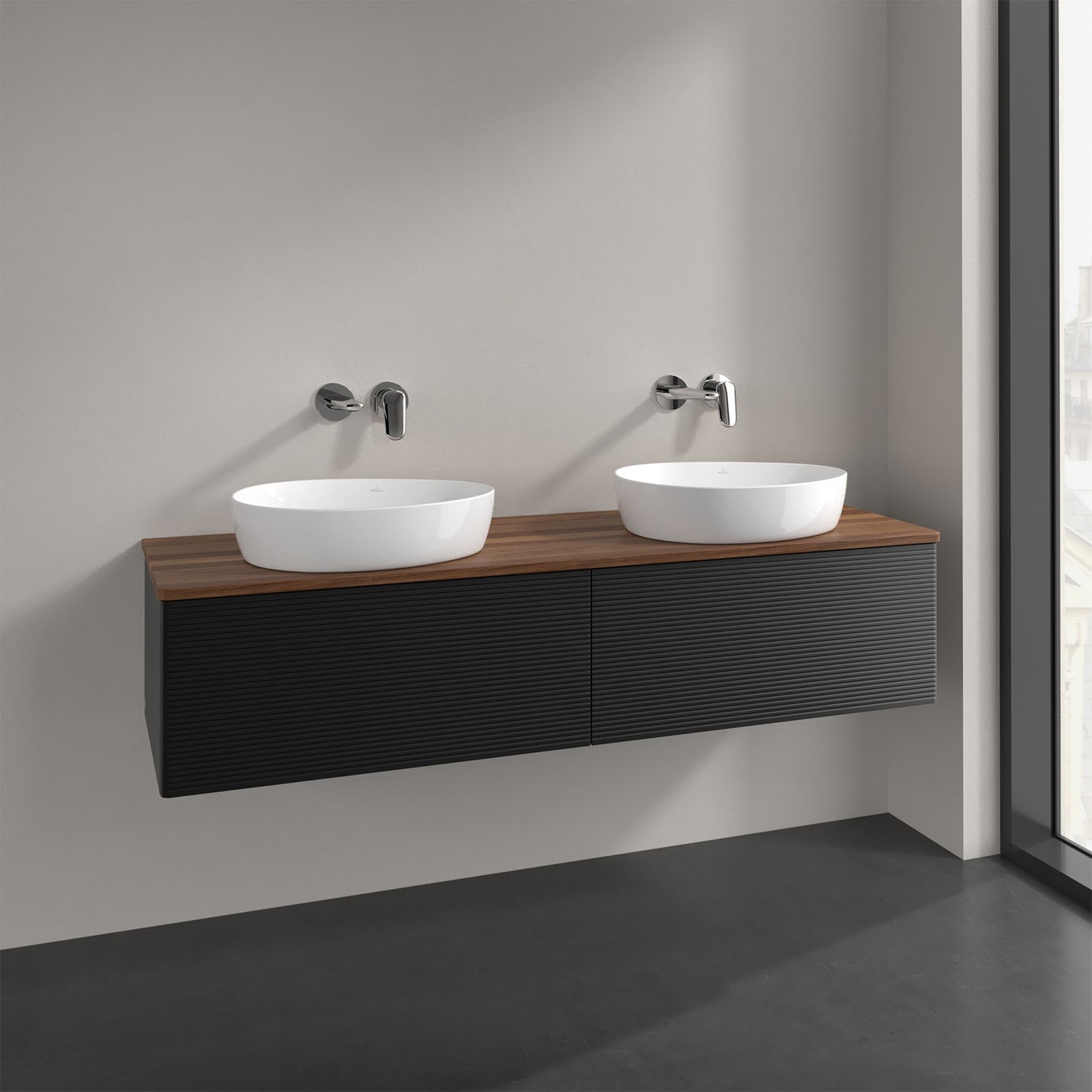 Villeroy & Boch Antao Waschbeckenunterschrank, 160 x 36 cm, 2 Auszüge, Front mit Struktur, ohne Hahnloch, für Waschtisch links und rechts