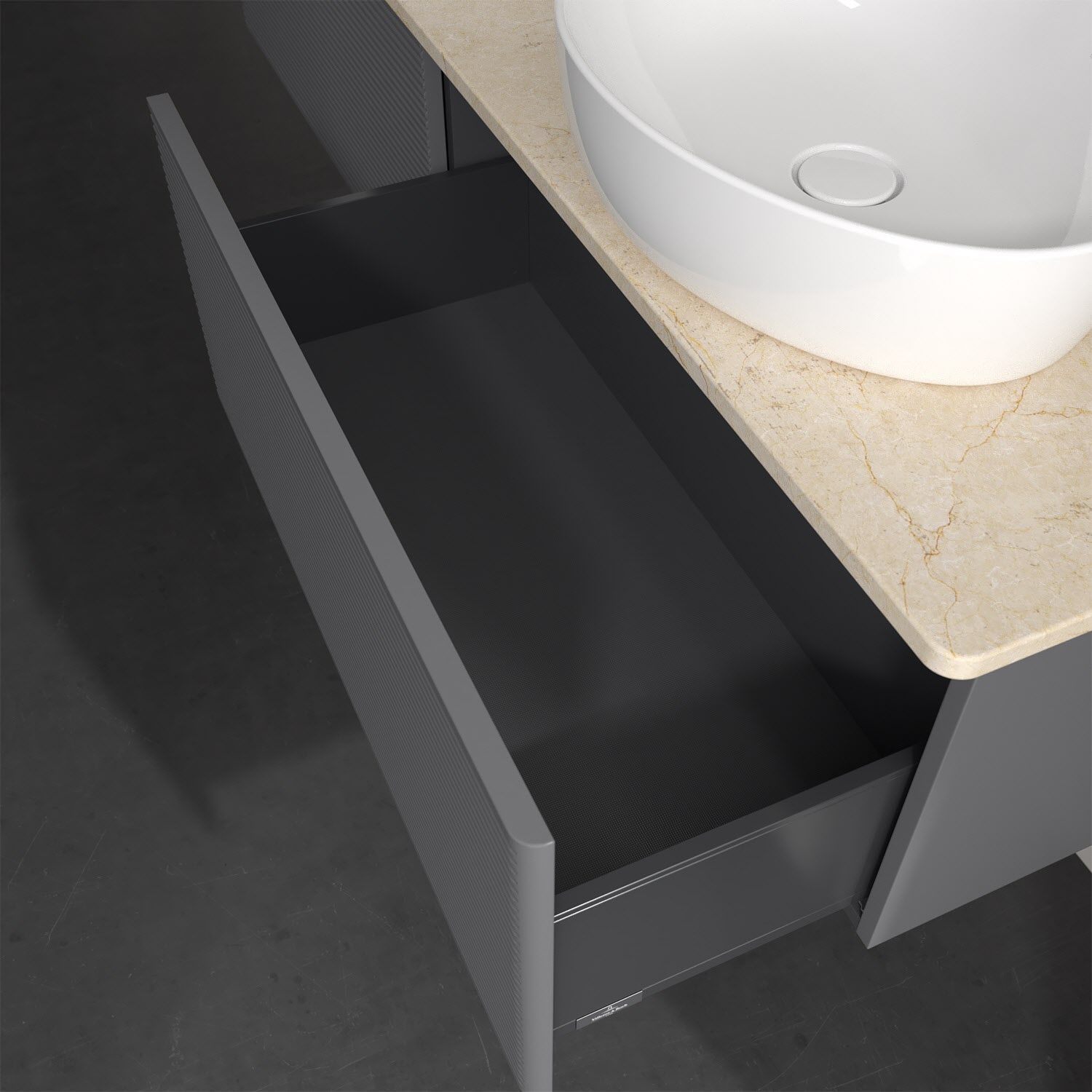 - kein Umfallen oder Verrutschen von Pflegeprodukten in den Schubladen dank rutschhemmendem Boden