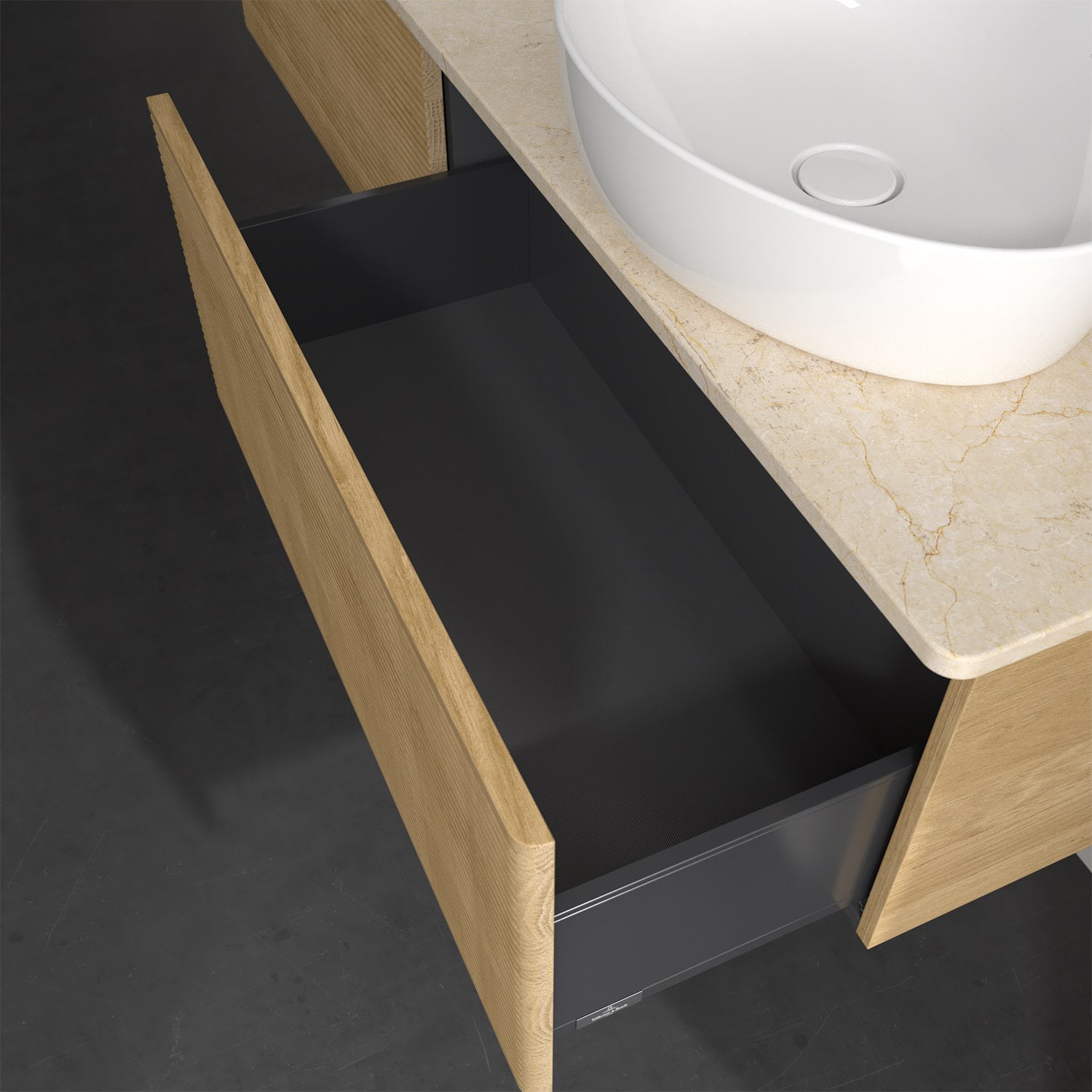 - kein Umfallen oder Verrutschen von Pflegeprodukten in den Schubladen dank rutschhemmendem Boden