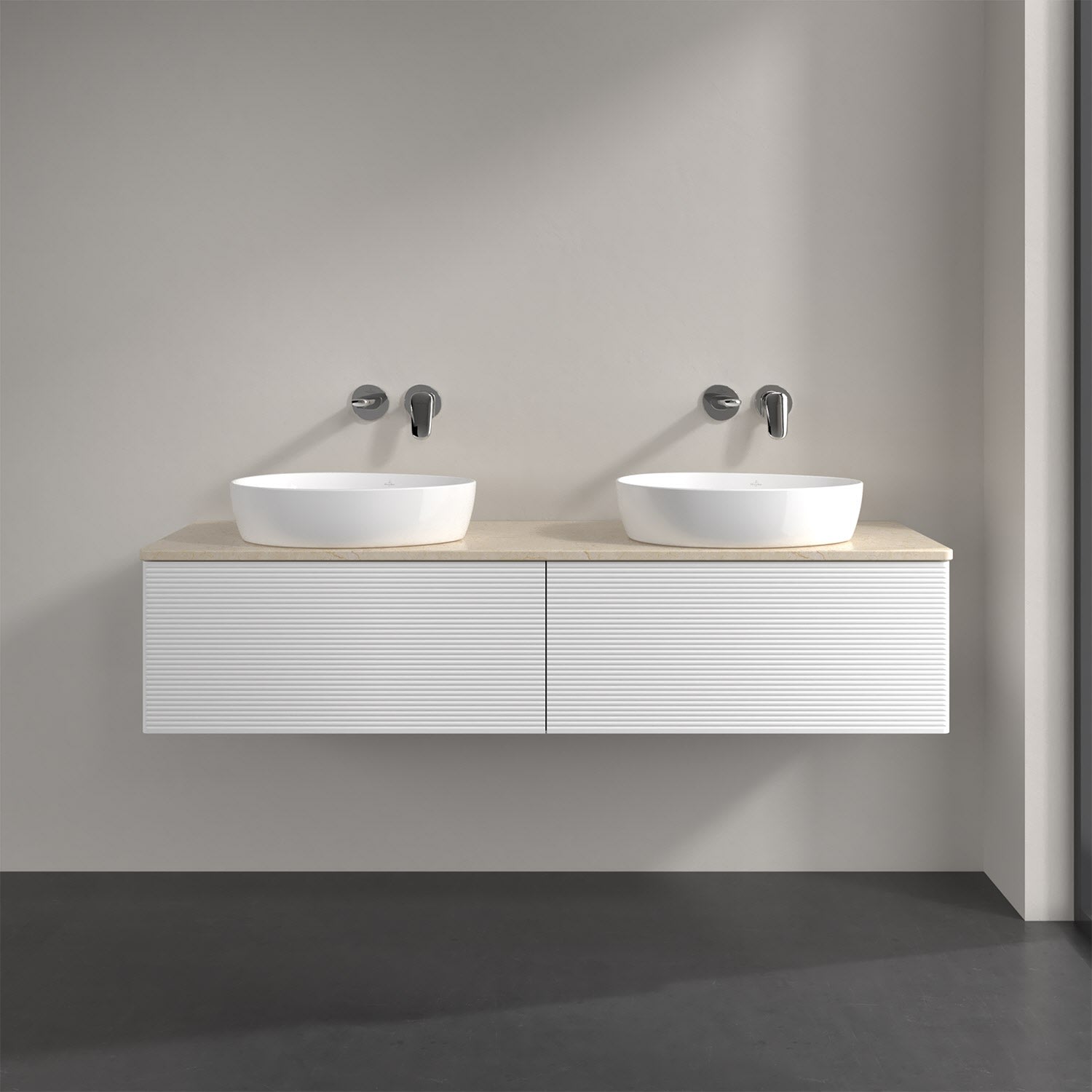 Villeroy & Boch Antao Waschbeckenunterschrank, 160 x 36 cm, 2 Auszüge, Front mit Struktur, ohne Hahnloch, für Waschtisch links und rechts