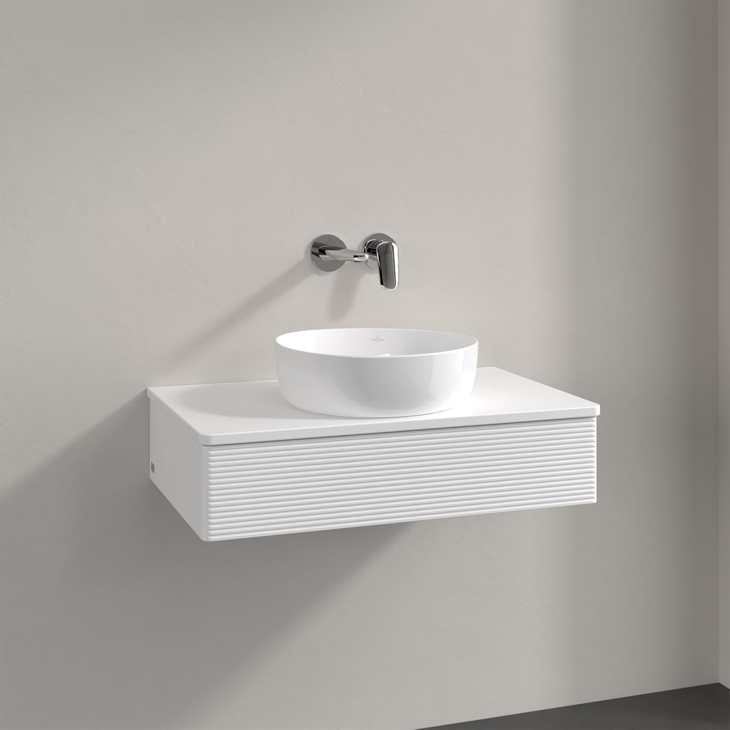Villeroy & Boch Antao Waschbeckenunterschrank, 80 x 19 cm, 1 Auszug, Front mit Struktur, mit Hahnloch