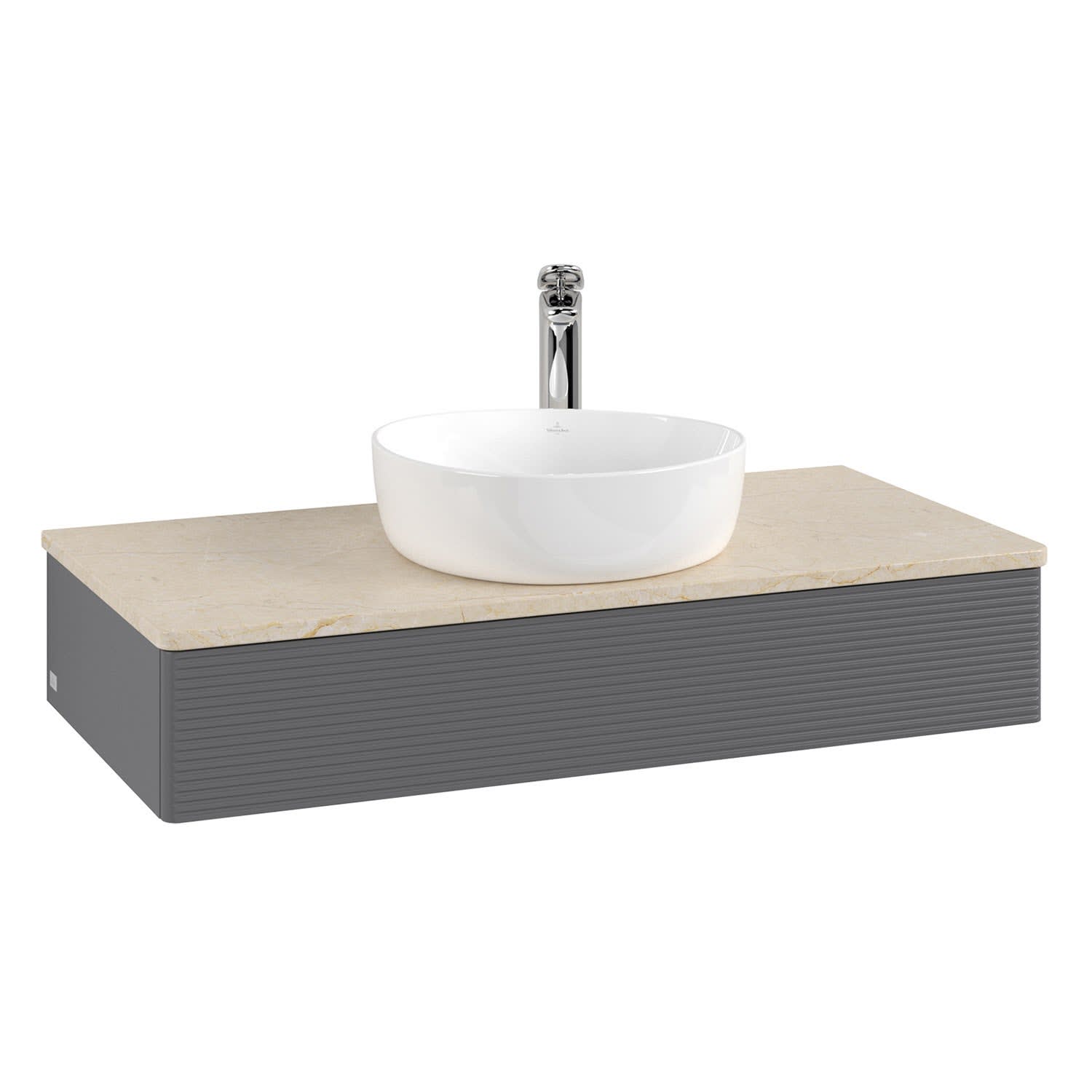 Villeroy & Boch Antao Waschbeckenunterschrank, 100 x 19 cm, 1 Auszug, Front mit Struktur, mit Hahnloch