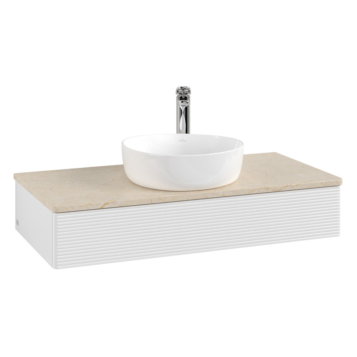 Villeroy & Boch Antao Waschbeckenunterschrank, 100 x 19 cm, 1 Auszug, Front mit Struktur, mit Hahnloch