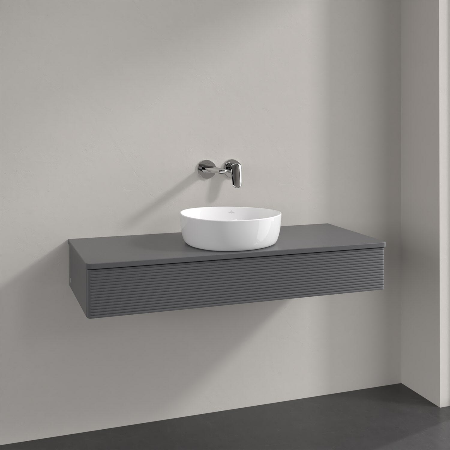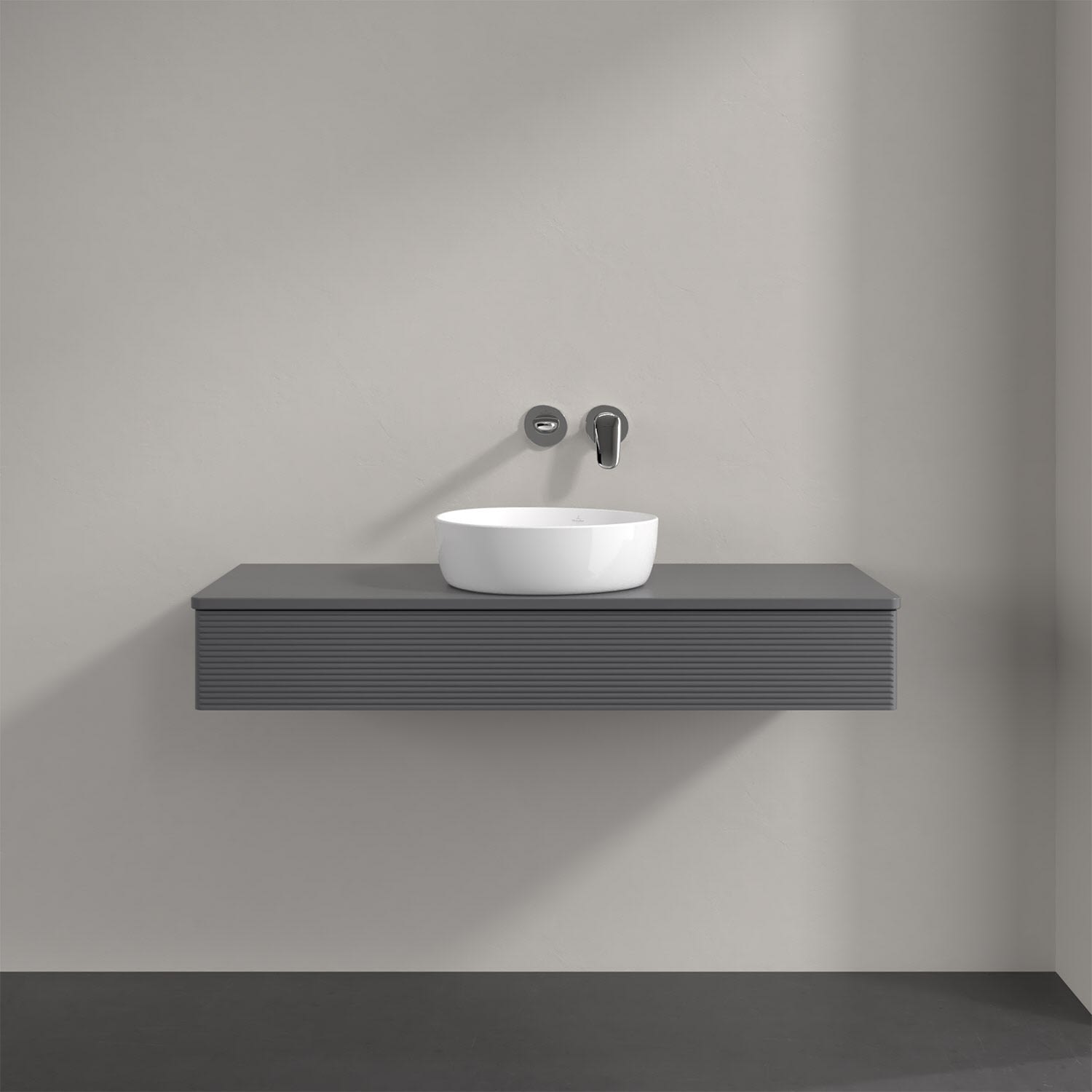 Villeroy & Boch Antao Waschbeckenunterschrank, 120 x 19 cm, 1 Auszug, Front mit Struktur, mit Hahnloch, für Waschtisch mittig