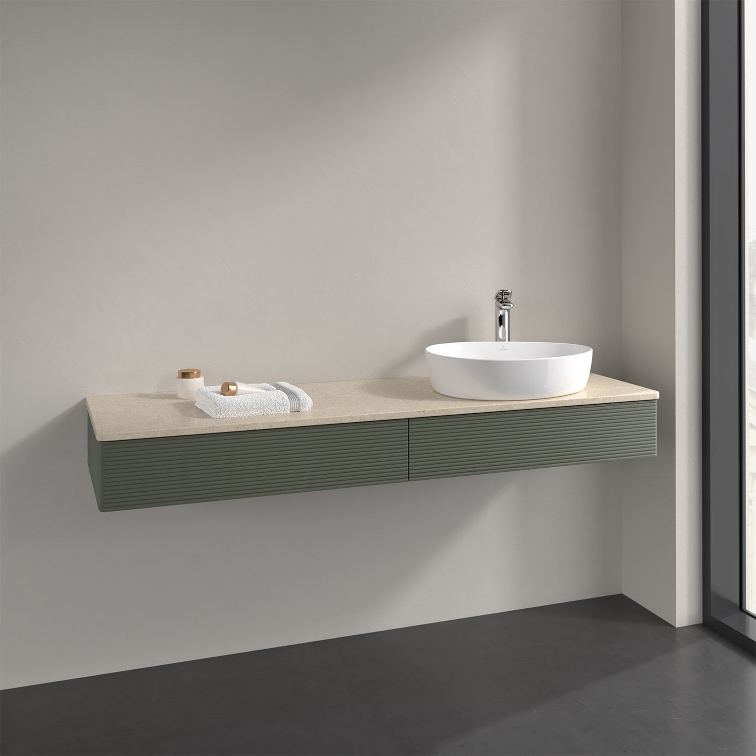 Villeroy & Boch Antao Waschbeckenunterschrank, 160 x 19 cm, 2 Auszüge, Front mit Struktur, mit Hahnloch, für Waschtisch rechts