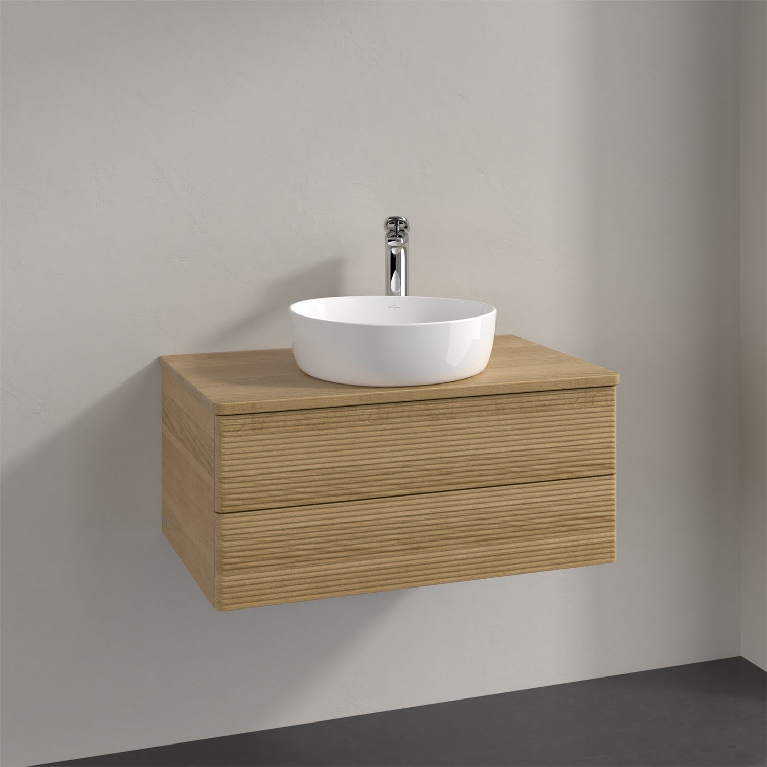 Villeroy & Boch Antao Waschbeckenunterschrank, 80 x 19 cm, 2 Auszüge, Fronten mit Struktur, mit Hahnloch