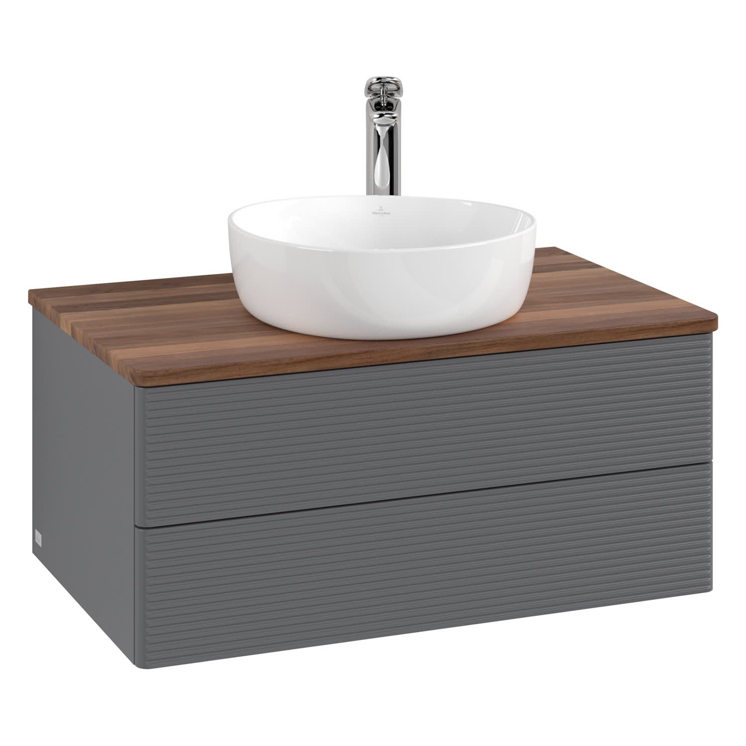 Villeroy & Boch Antao Waschbeckenunterschrank, 80 x 19 cm, 2 Auszüge, Fronten mit Struktur, mit Hahnloch