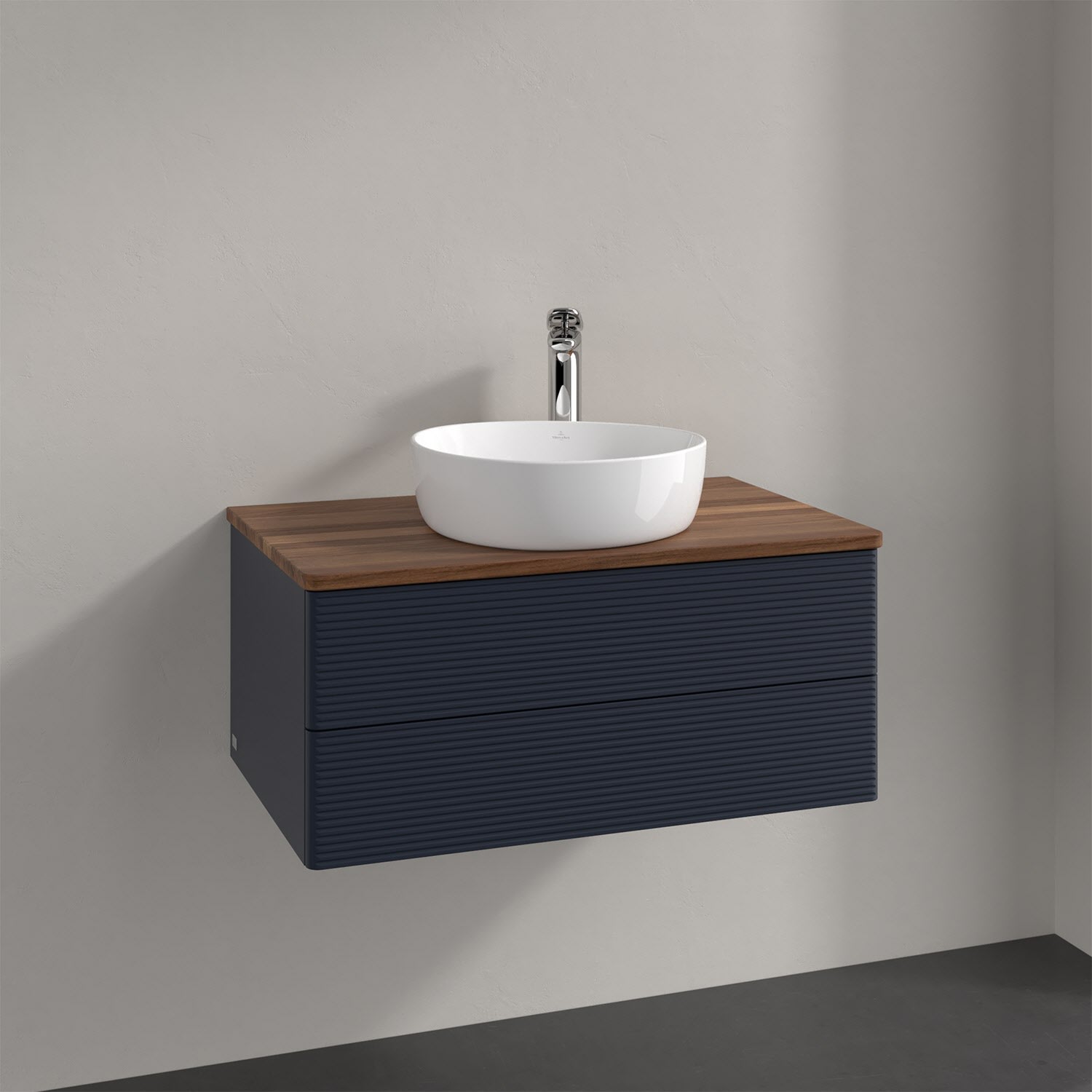 Villeroy & Boch Antao Waschbeckenunterschrank, 80 x 19 cm, 2 Auszüge, Fronten mit Struktur, mit Hahnloch