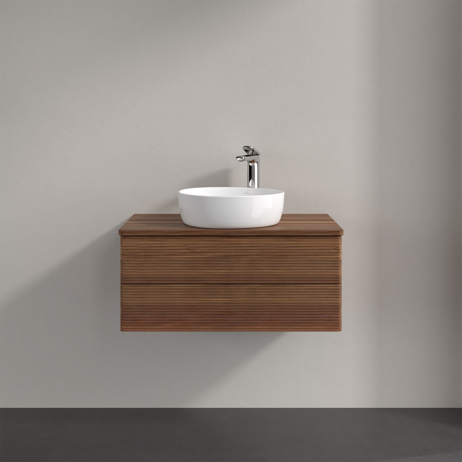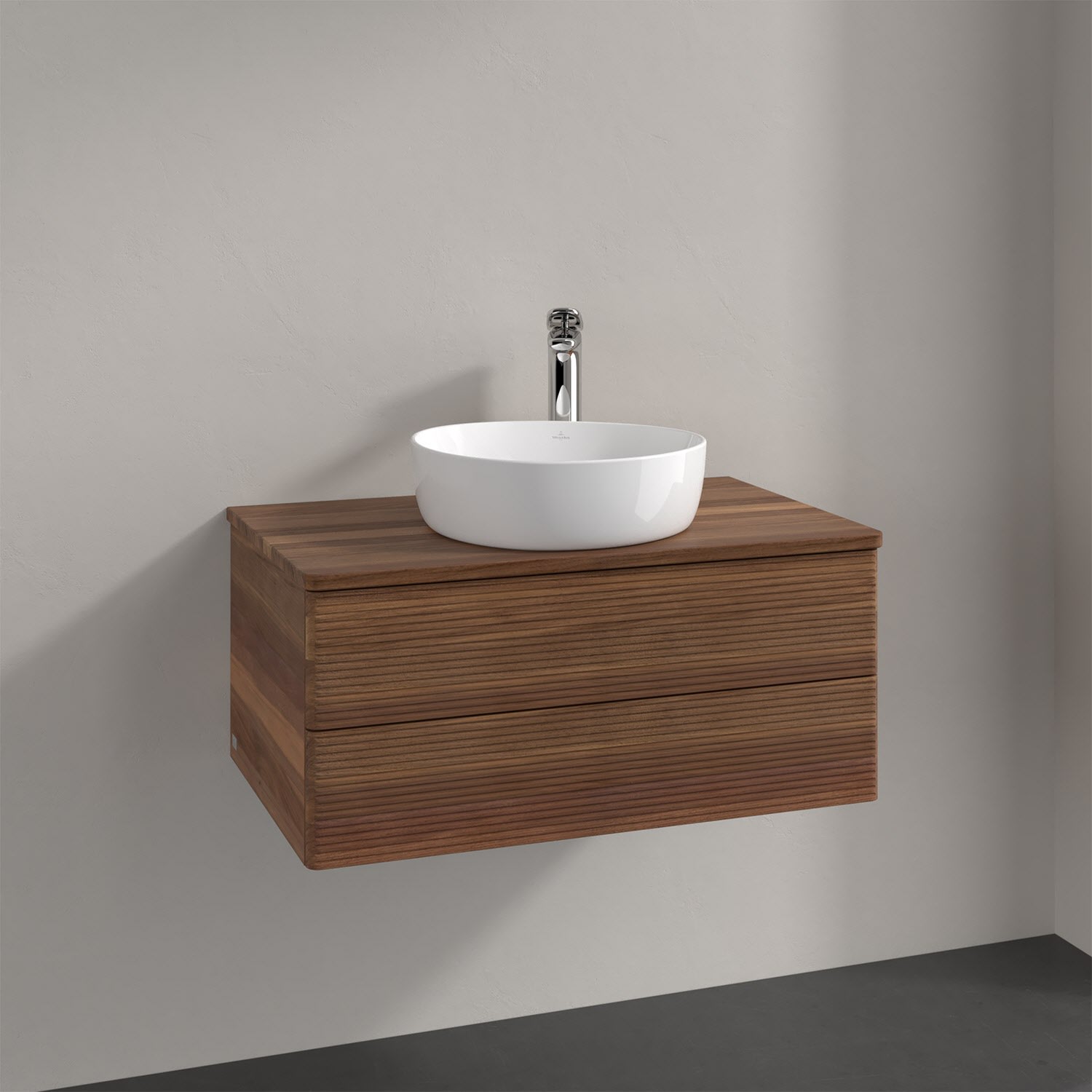 Villeroy & Boch Antao Waschbeckenunterschrank, 80 x 19 cm, 2 Auszüge, Fronten mit Struktur, mit Hahnloch