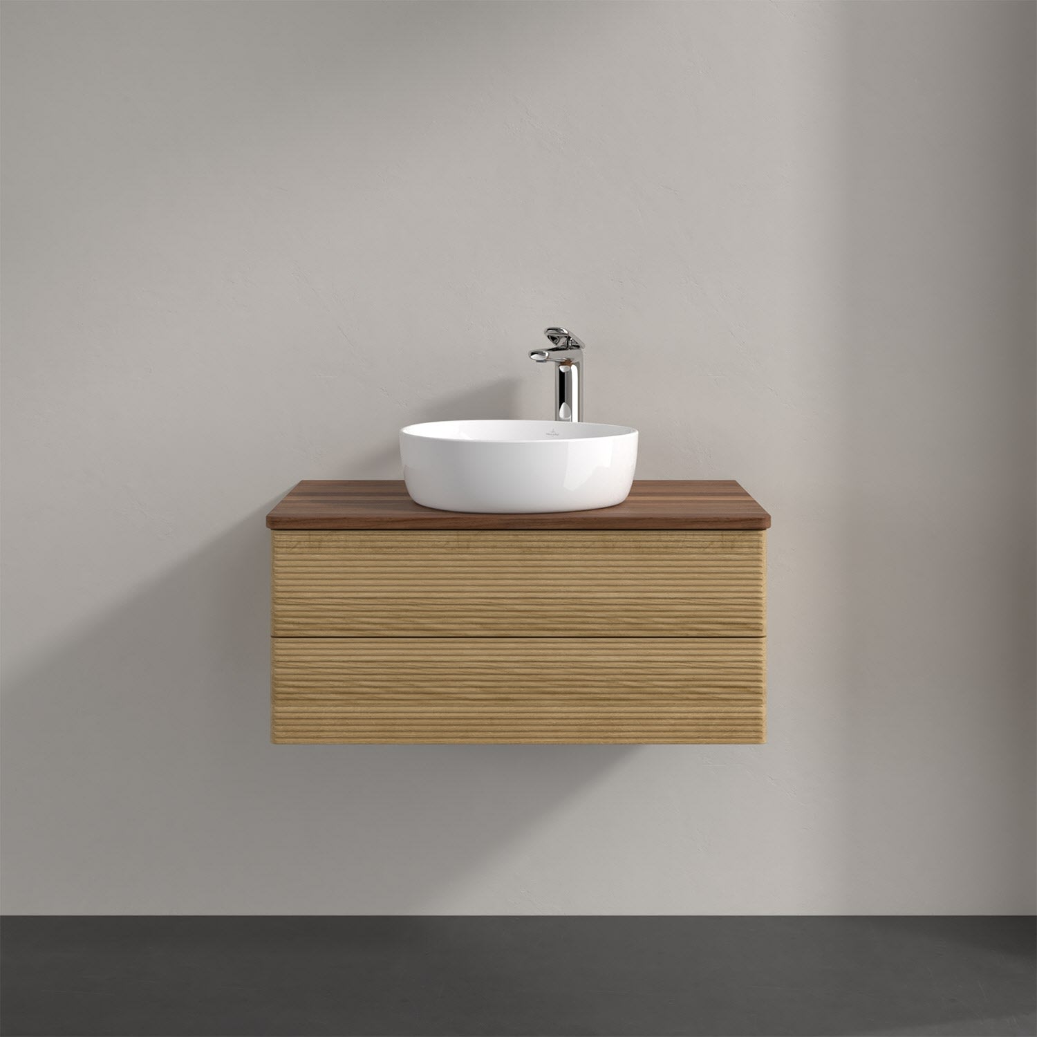 Villeroy & Boch Antao Waschbeckenunterschrank, 80 x 19 cm, 2 Auszüge, Fronten mit Struktur, mit Hahnloch