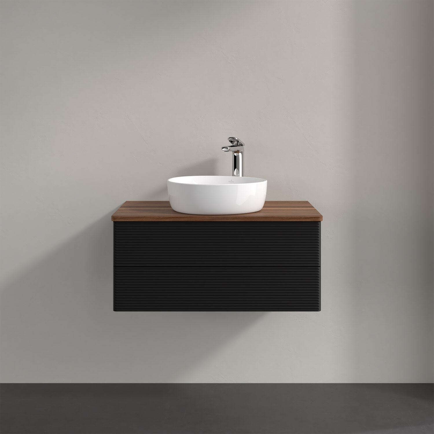 Villeroy & Boch Antao Waschbeckenunterschrank, 80 x 19 cm, 2 Auszüge, Fronten mit Struktur, mit Hahnloch