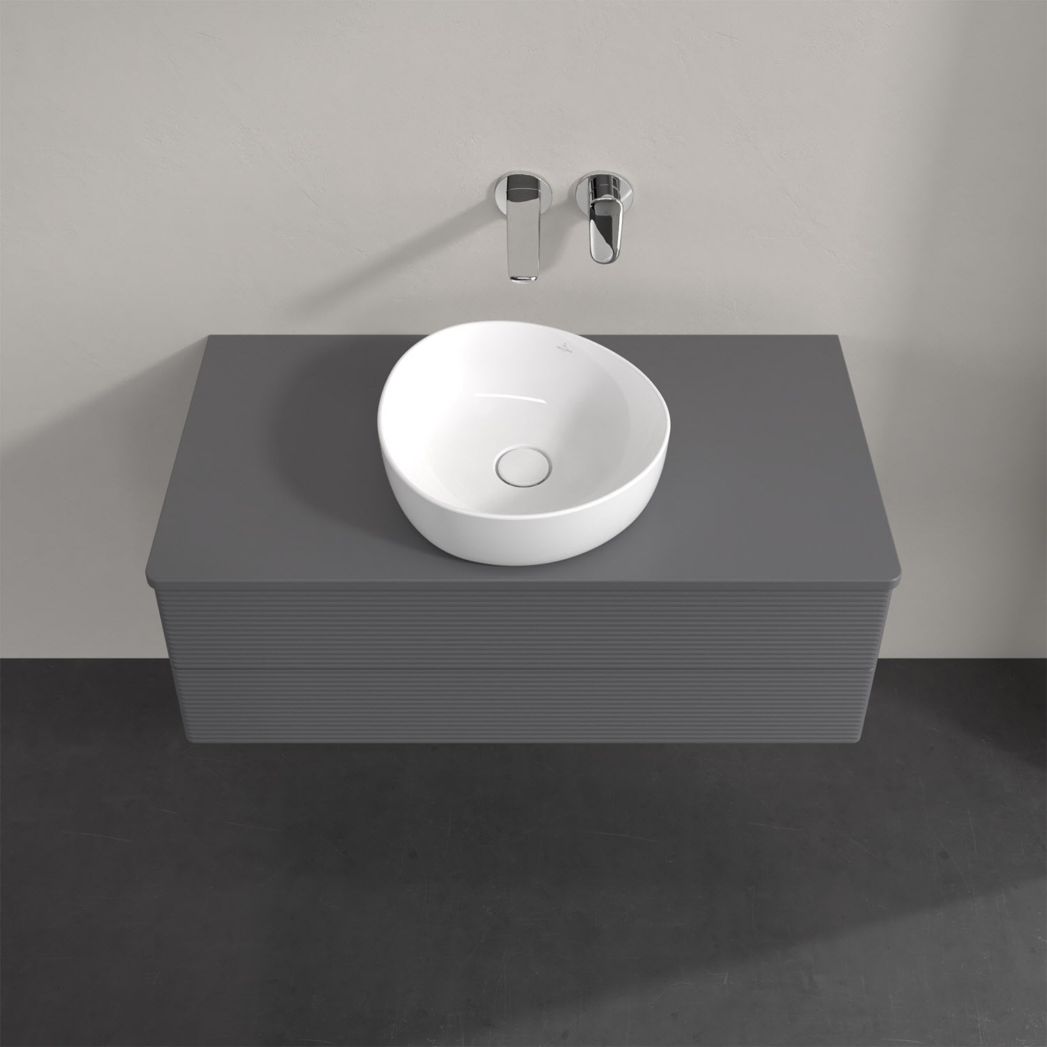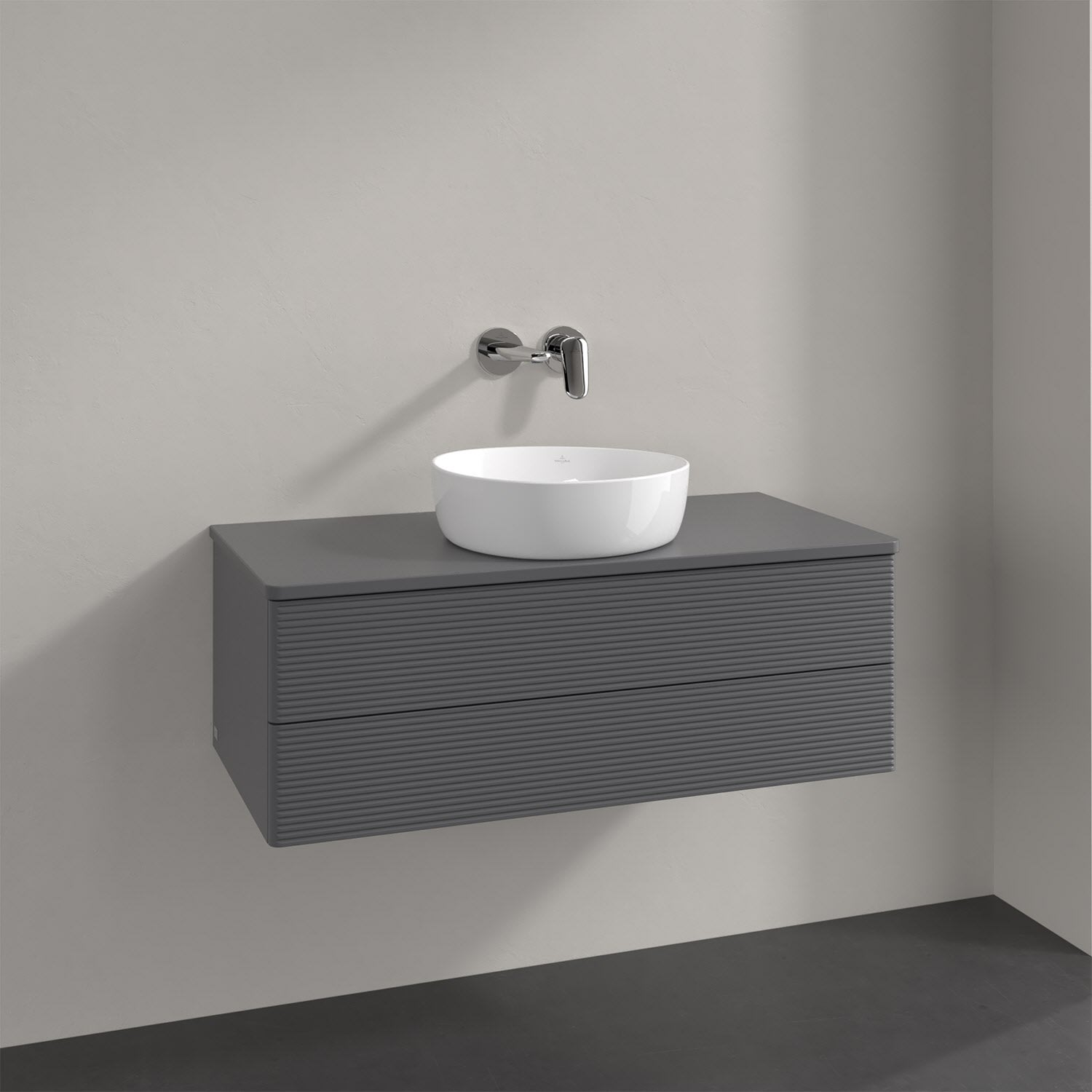 Villeroy & Boch Antao Waschbeckenunterschrank, 100 x 19 cm, 2 Auszüge, Fronten mit Struktur, mit Hahnloch