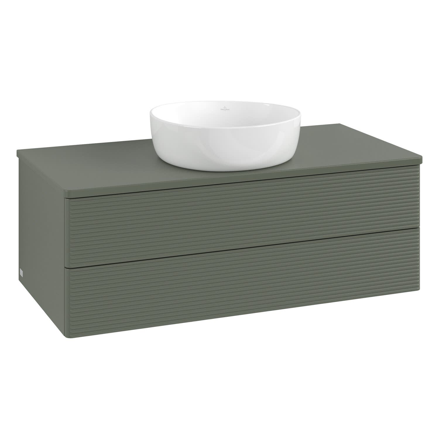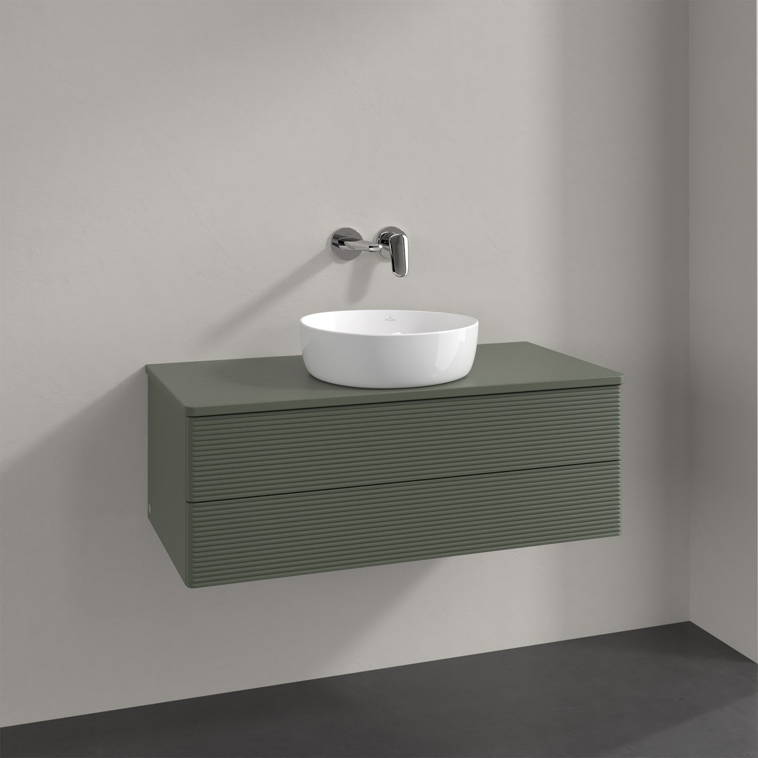 Villeroy & Boch Antao Waschbeckenunterschrank, 100 x 19 cm, 2 Auszüge, Fronten mit Struktur, mit Hahnloch