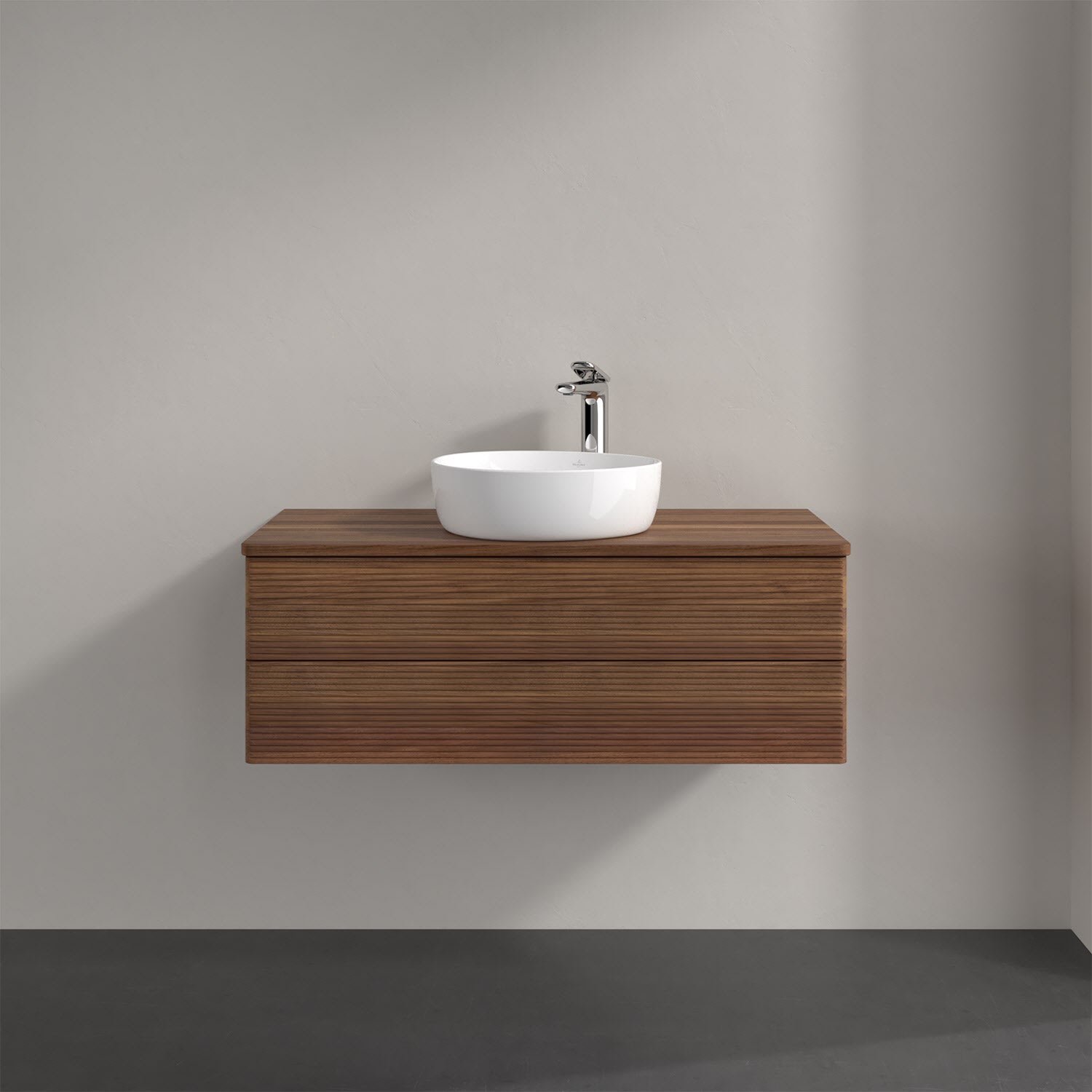 Villeroy & Boch Antao Waschbeckenunterschrank, 100 x 19 cm, 2 Auszüge, Fronten mit Struktur, mit Hahnloch