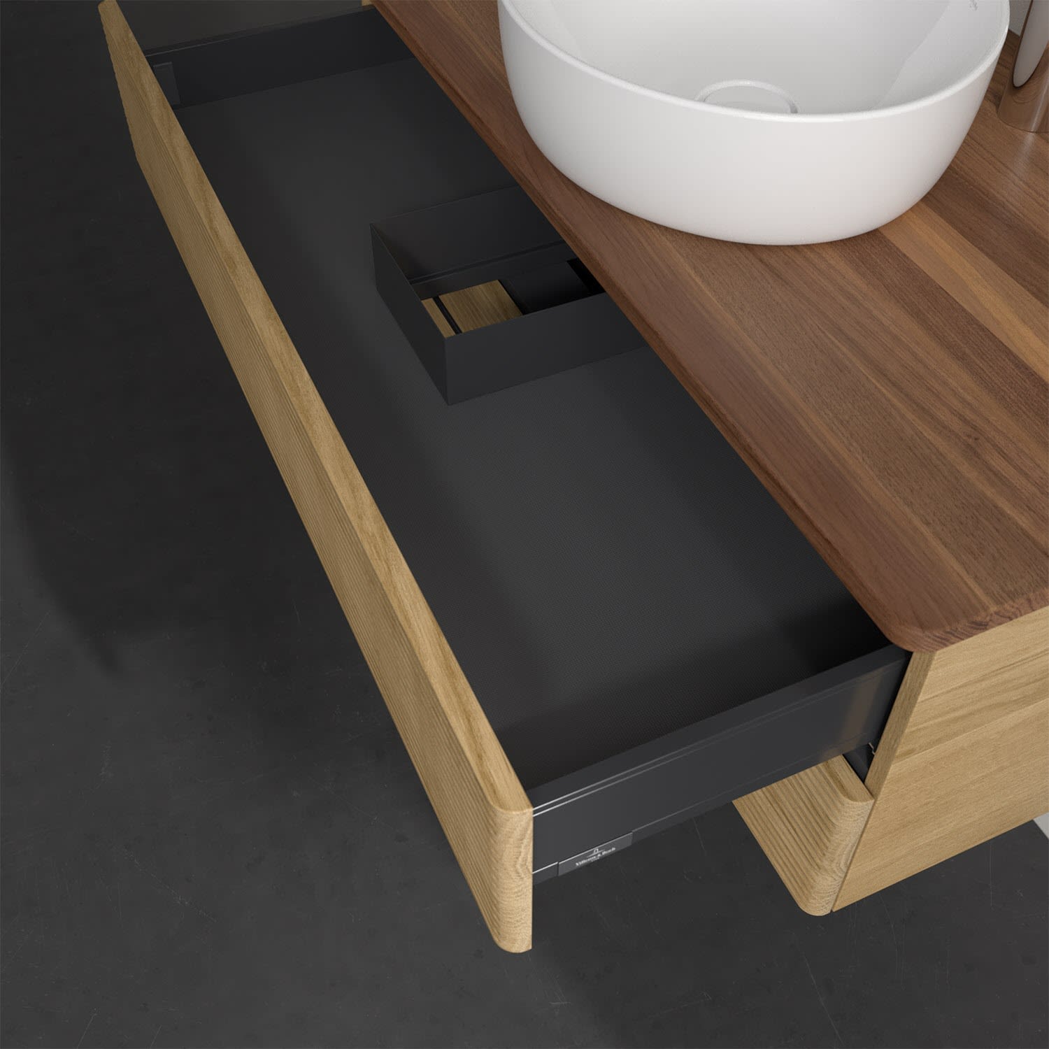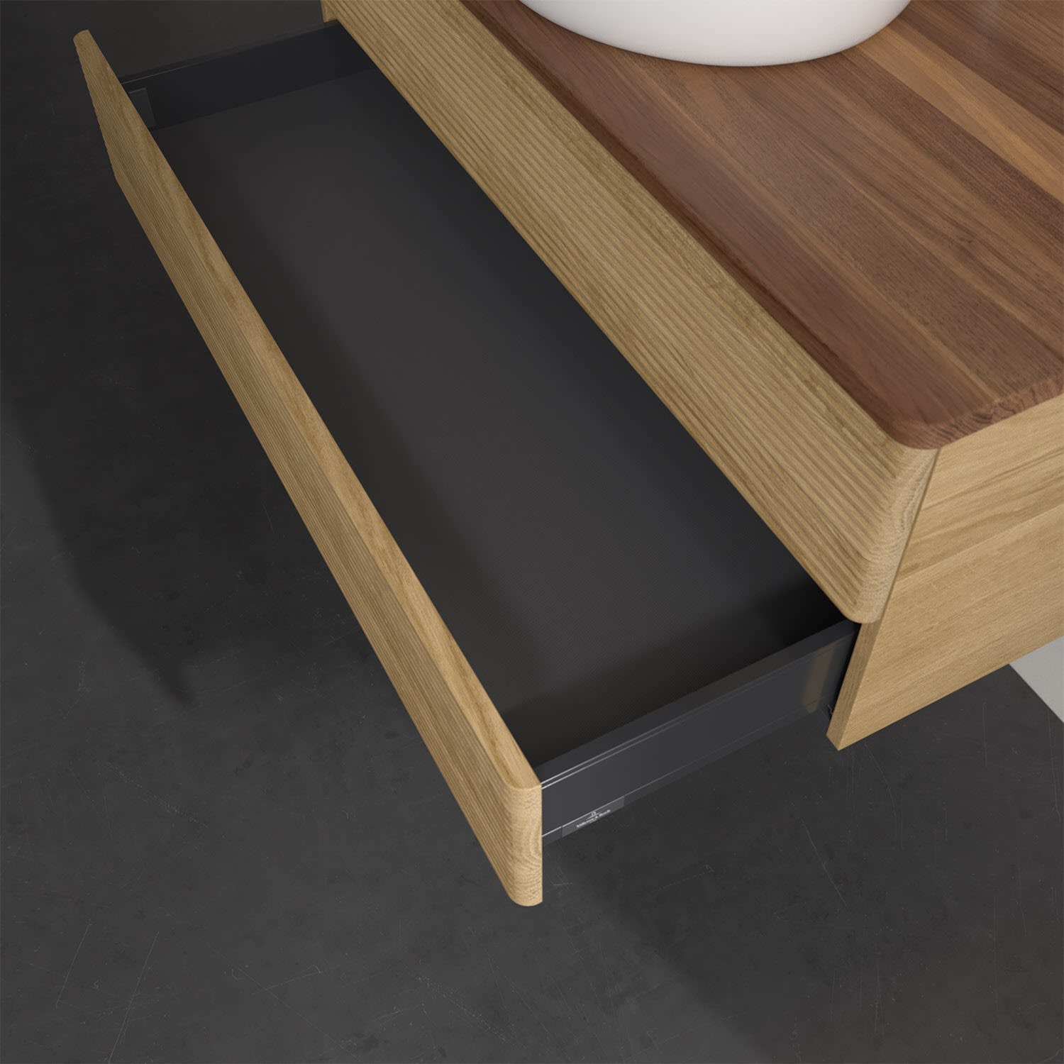 - kein Umfallen oder Verrutschen von Pflegeprodukten in den Schubladen dank rutschhemmendem Boden