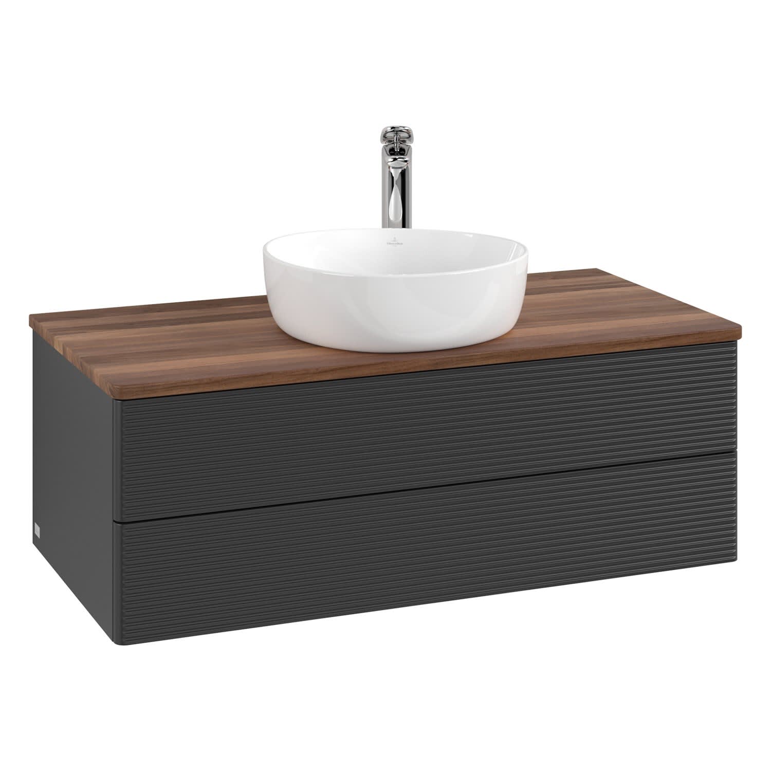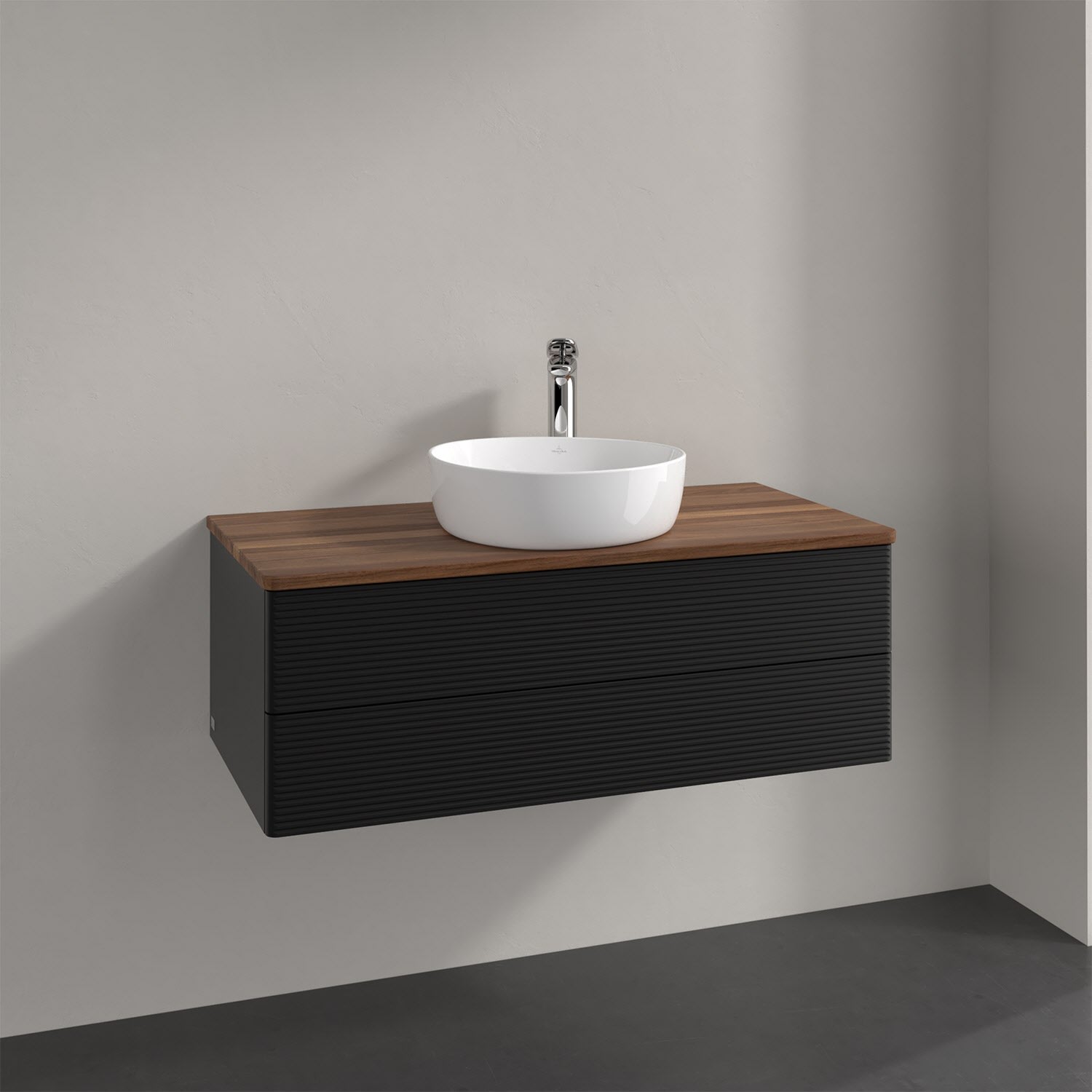 Villeroy & Boch Antao Waschbeckenunterschrank, 100 x 19 cm, 2 Auszüge, Fronten mit Struktur, mit Hahnloch