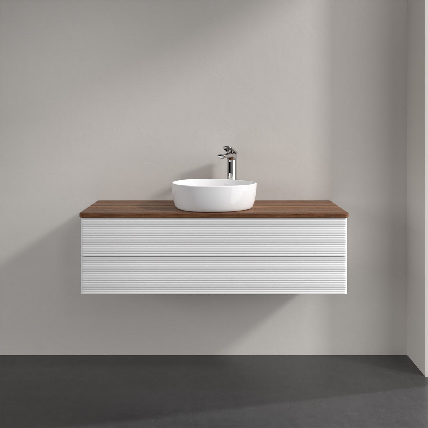 Villeroy & Boch Antao Waschbeckenunterschrank, 120 x 19 cm, 2 Auszüge, Fronten mit Struktur, mit Hahnloch, für Waschtisch mittig