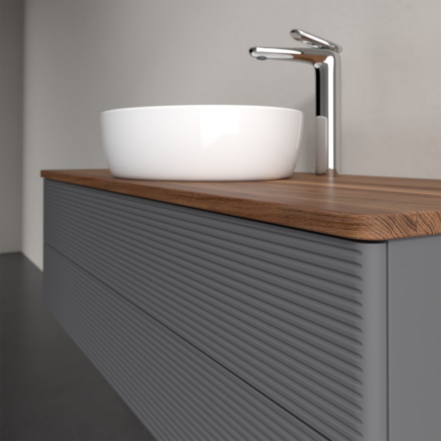 Der wandhängende Antao Waschtischunterschrank von Villeroy & Boch bietet nicht nur jede Menge Stauraum – er ist dank seines naturinspirierten Designs mit seinen abgerundeten Kanten auch noch besonders stilvoll und schafft eine gemütliche Atmosphäre im Badezimmer. Auf der Waschtischplatte bietet sich rechts und links neben dem Waschtisch viel Platz für Zahnbürstenbecher oder Seifenspender. Zwei geräumige Auszüge bieten viel Platz, um alles Notwendige zu verstauen und Ordnung zu halten. Öffnen lassen sie sich durch leichten Druck auf die strukturierte Front. Dank Vollauszug hat man immer alles im Blick und der Antirutschboden verhindert ein Umfallen oder Verrutschen der Gegenstände. Einfach clever! Für eine besonders leichte Pflege sorgt die mehrschichtig deckend lackierte Oberfläche. Bei der Ausführung in Massivholz wird dank des verarbeiteten Massivholzes jedes Möbel zu einem Unikat, das sich durch das lebendige Naturmaterial durch seine einzigartige Struktur und Maserung auszeichnet.