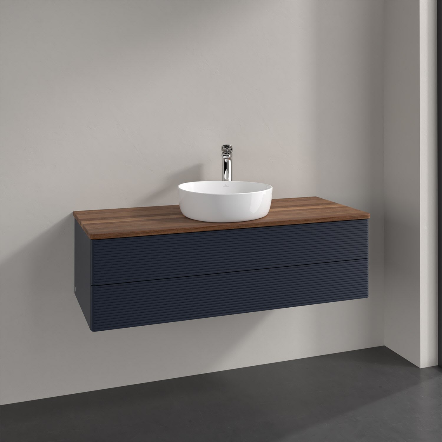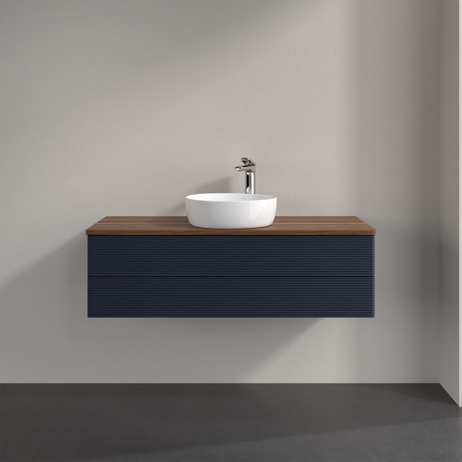 Villeroy & Boch Antao Waschbeckenunterschrank, 120 x 19 cm, 2 Auszüge, Fronten mit Struktur, mit Hahnloch, für Waschtisch mittig