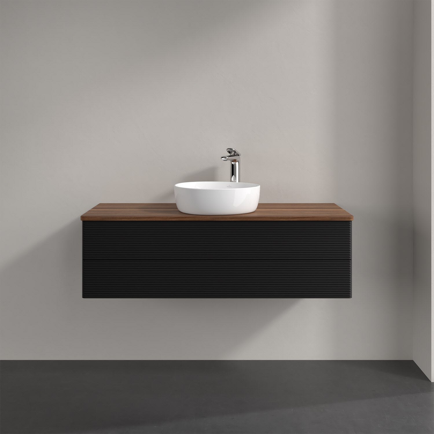 Villeroy & Boch Antao Waschbeckenunterschrank, 120 x 19 cm, 2 Auszüge, Fronten mit Struktur, mit Hahnloch, für Waschtisch mittig
