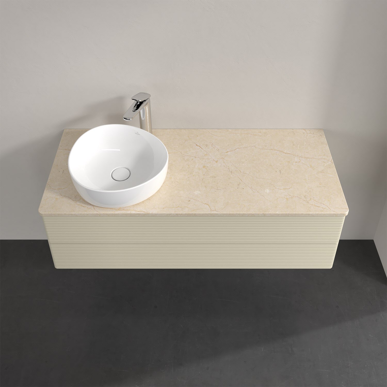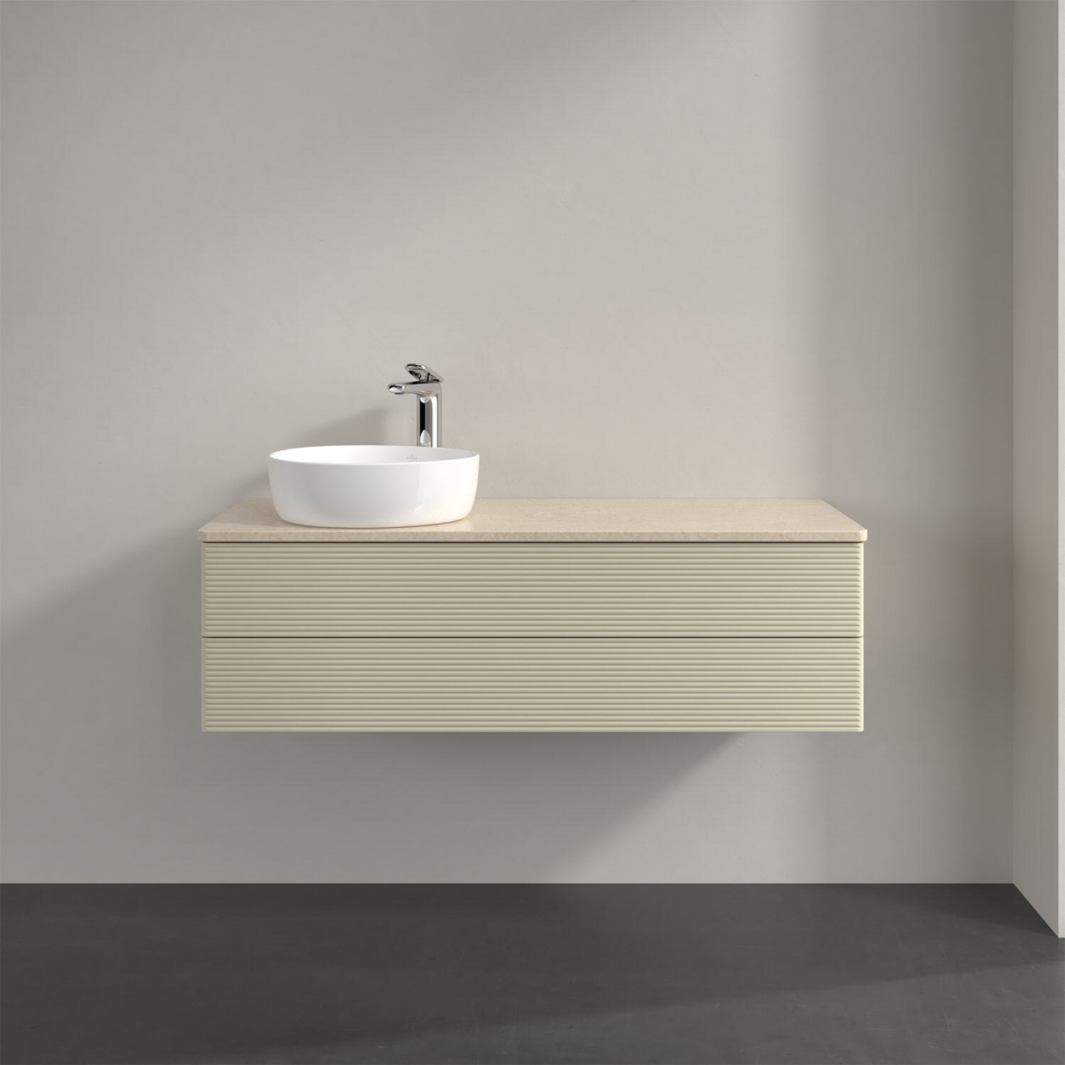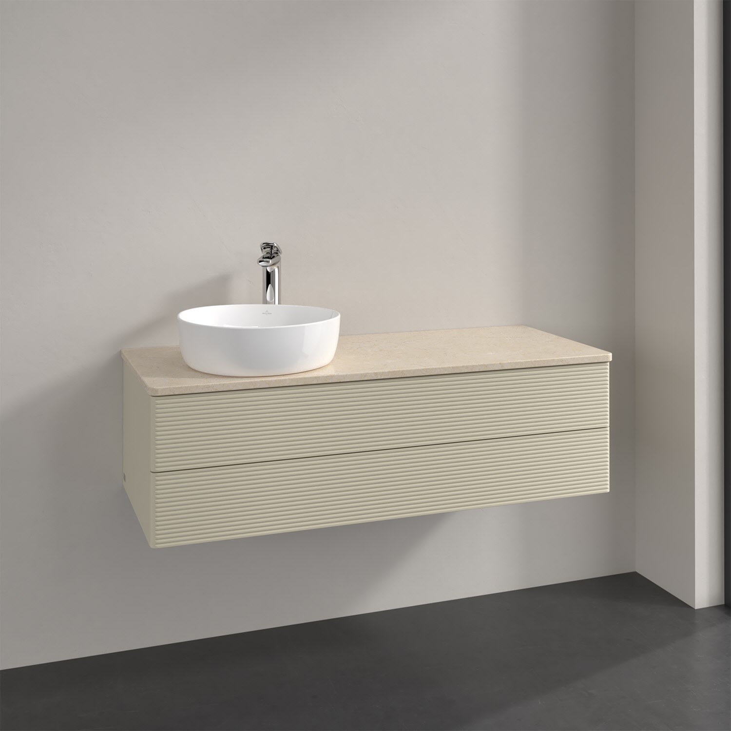 Villeroy & Boch Antao Waschbeckenunterschrank, 120 x 19 cm, 2 Auszüge, Fronten mit Struktur, mit Hahnloch, für Waschtisch links