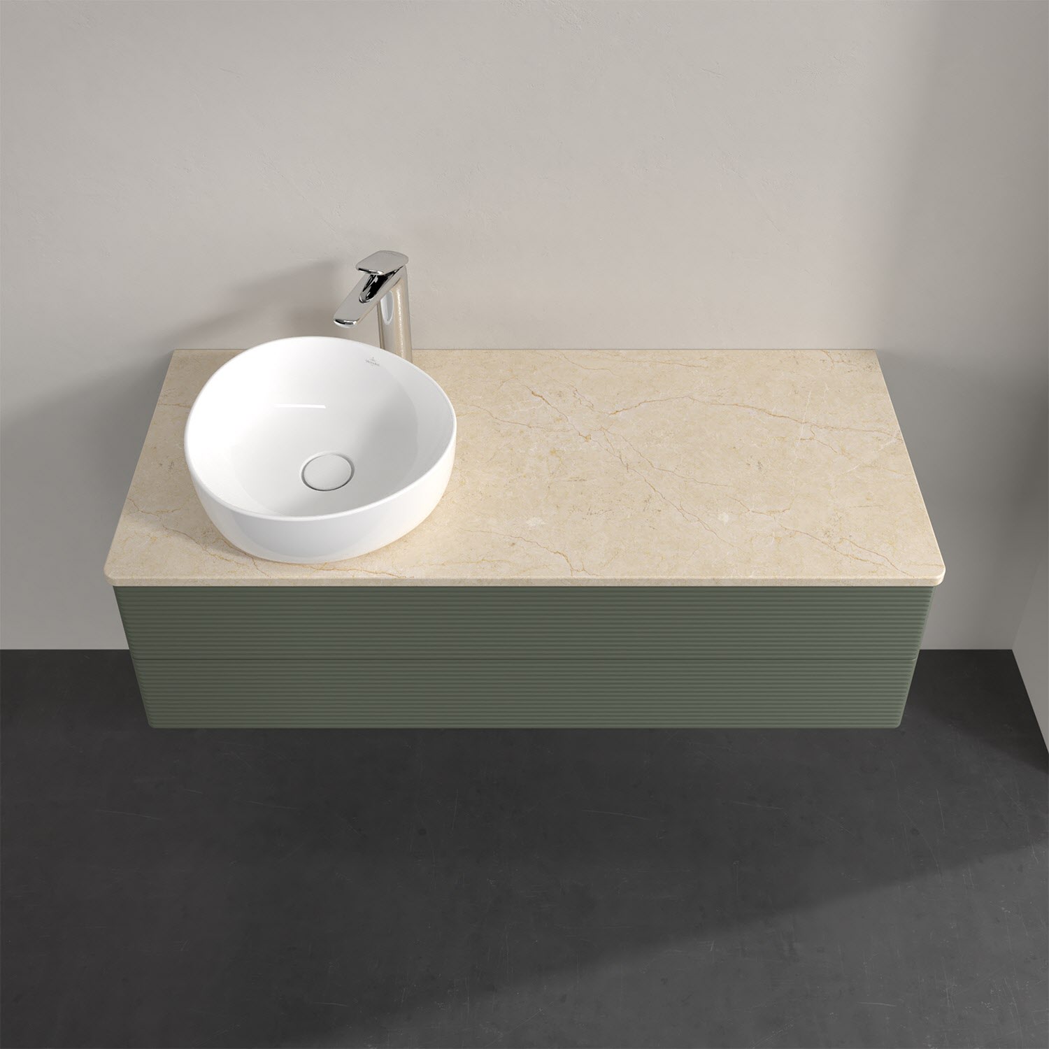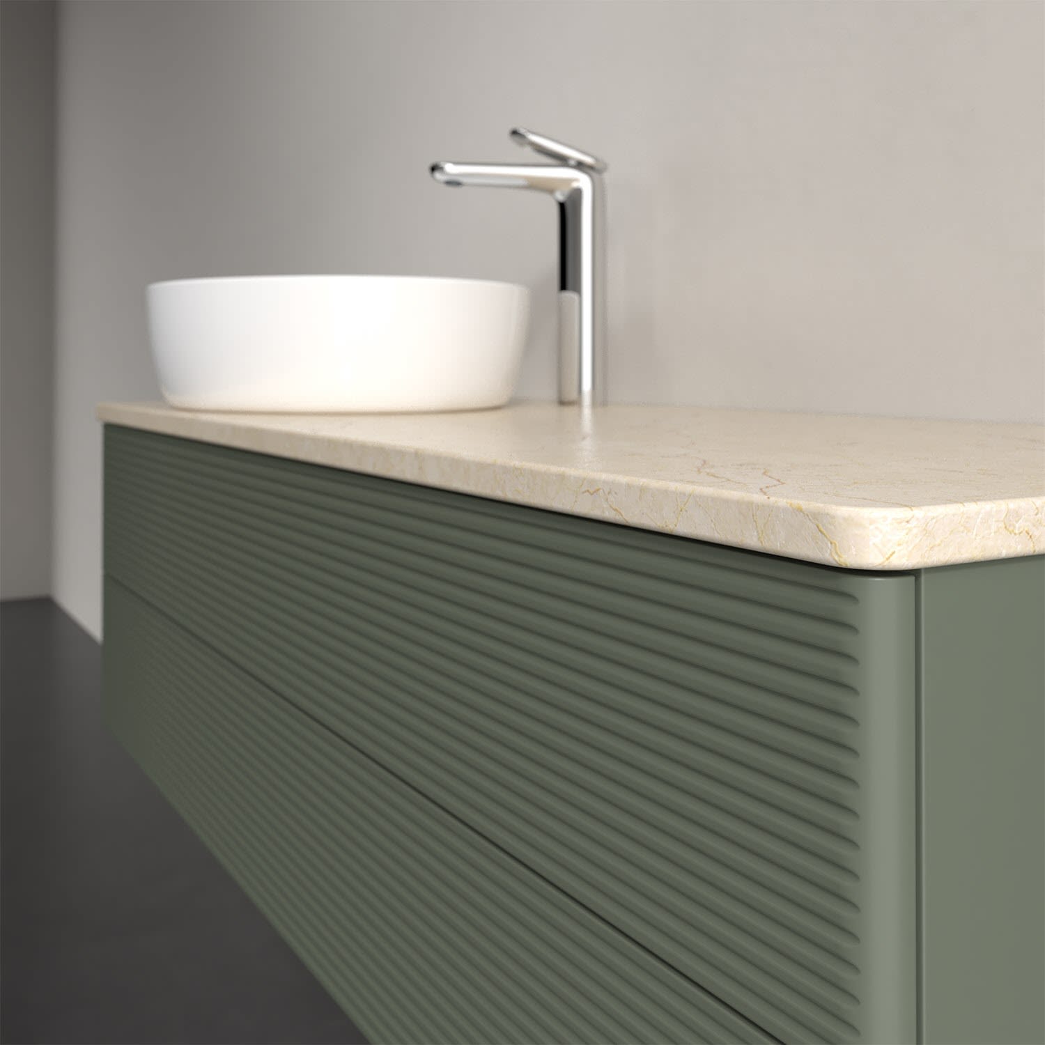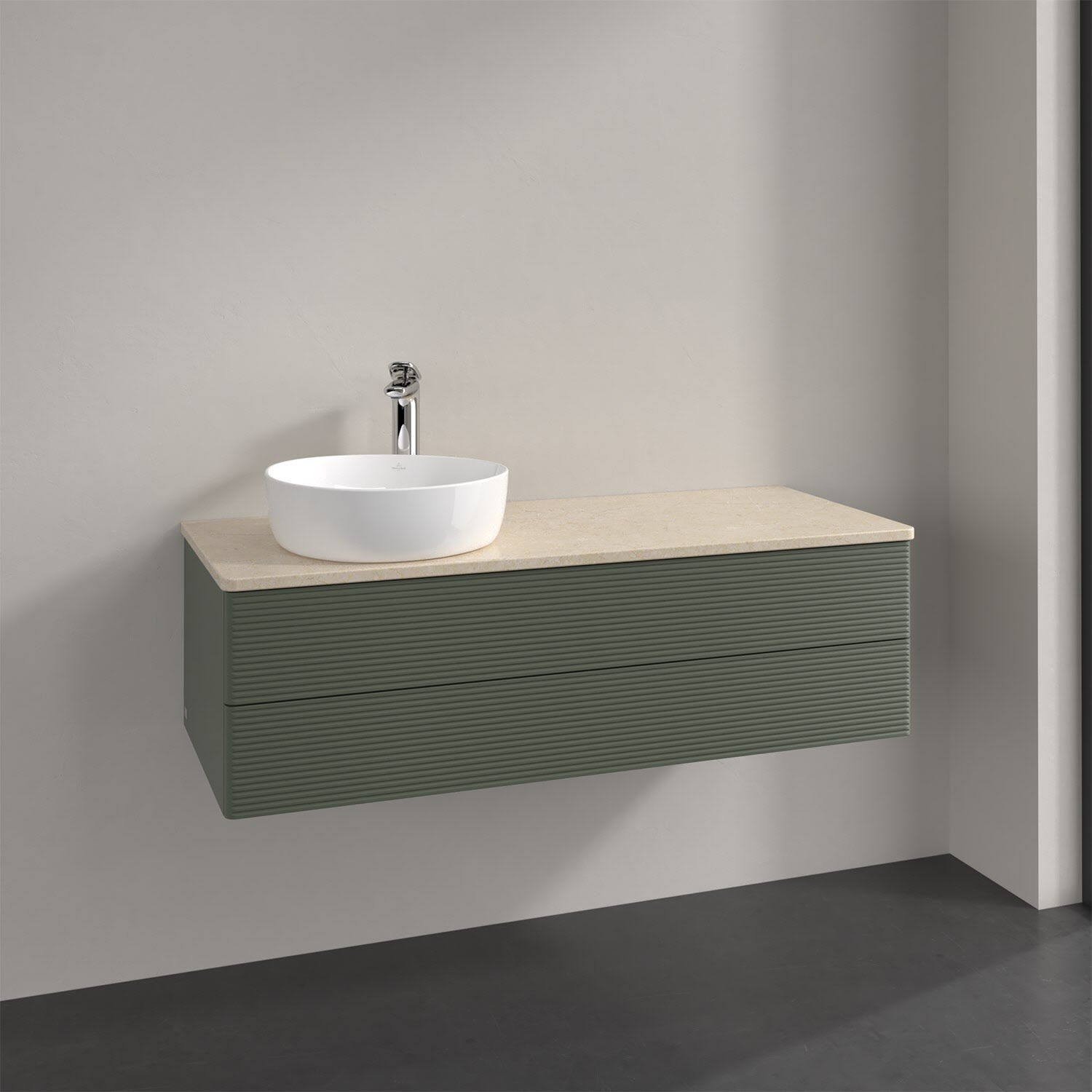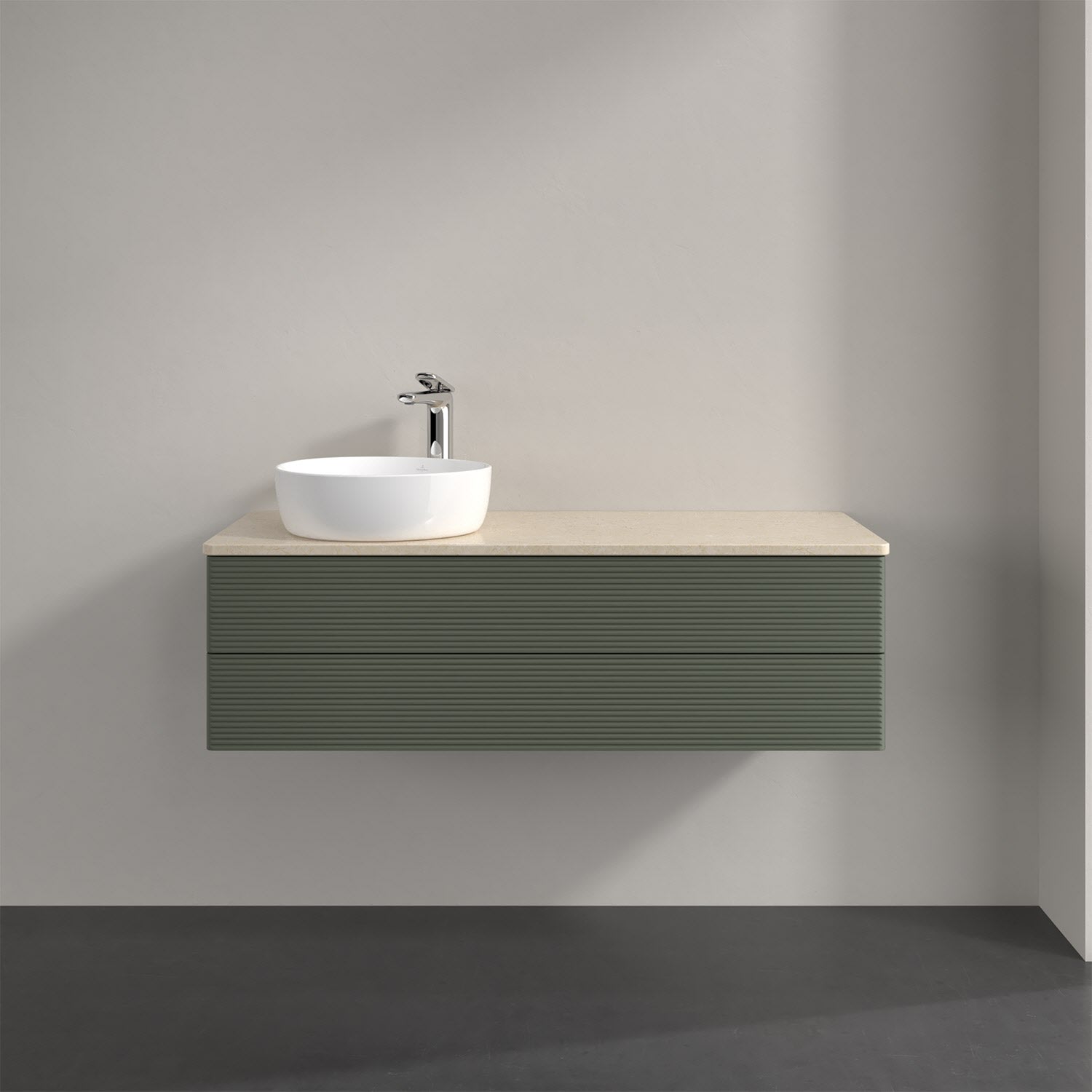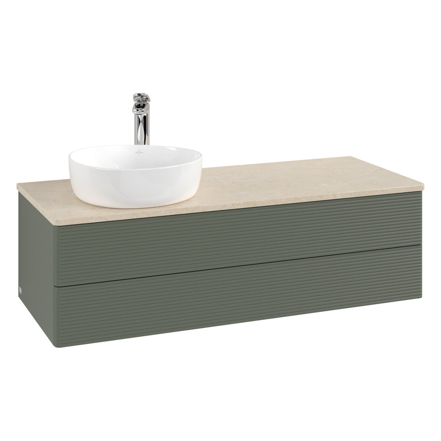 Villeroy & Boch Antao Waschbeckenunterschrank, 120 x 19 cm, 2 Auszüge, Fronten mit Struktur, mit Hahnloch, für Waschtisch links
