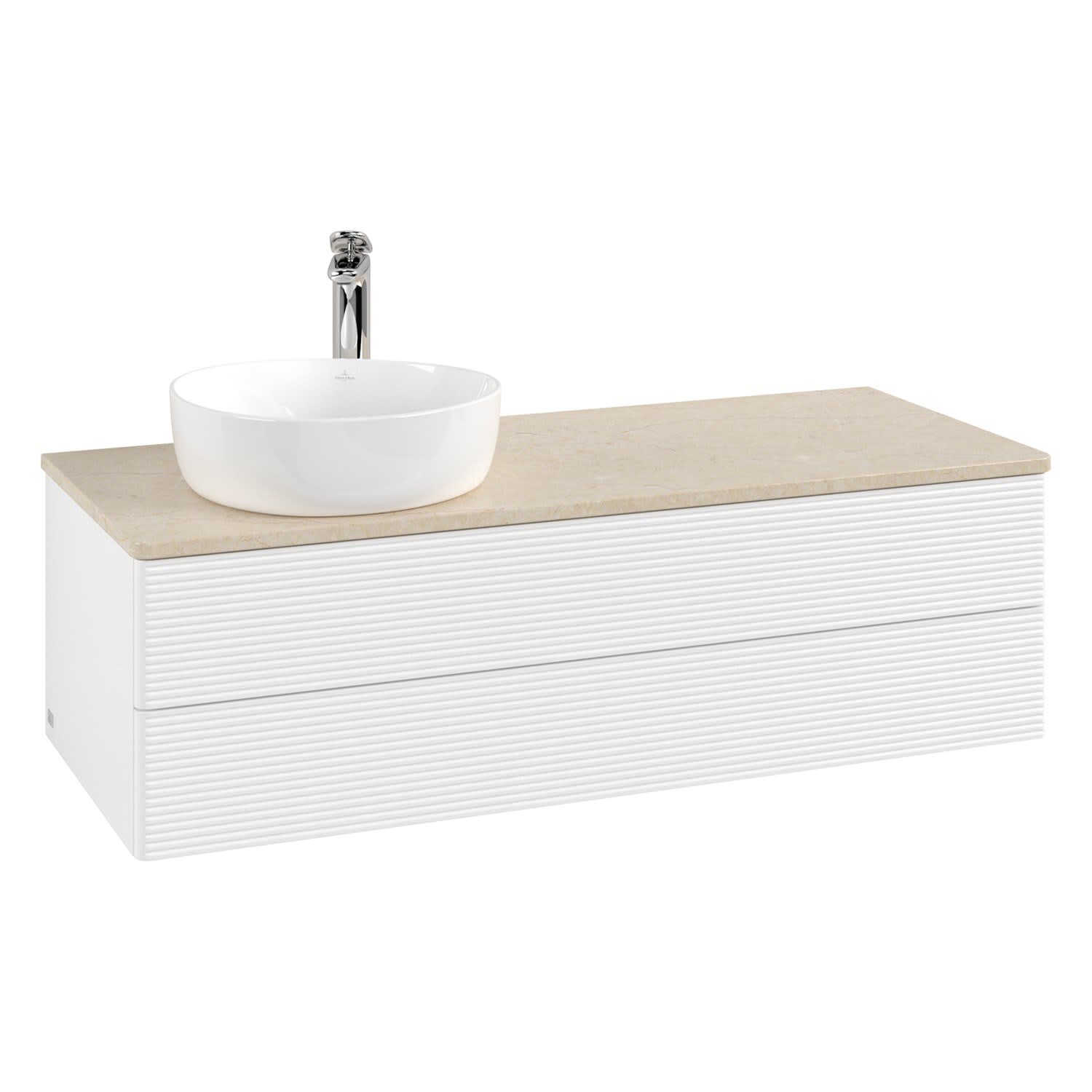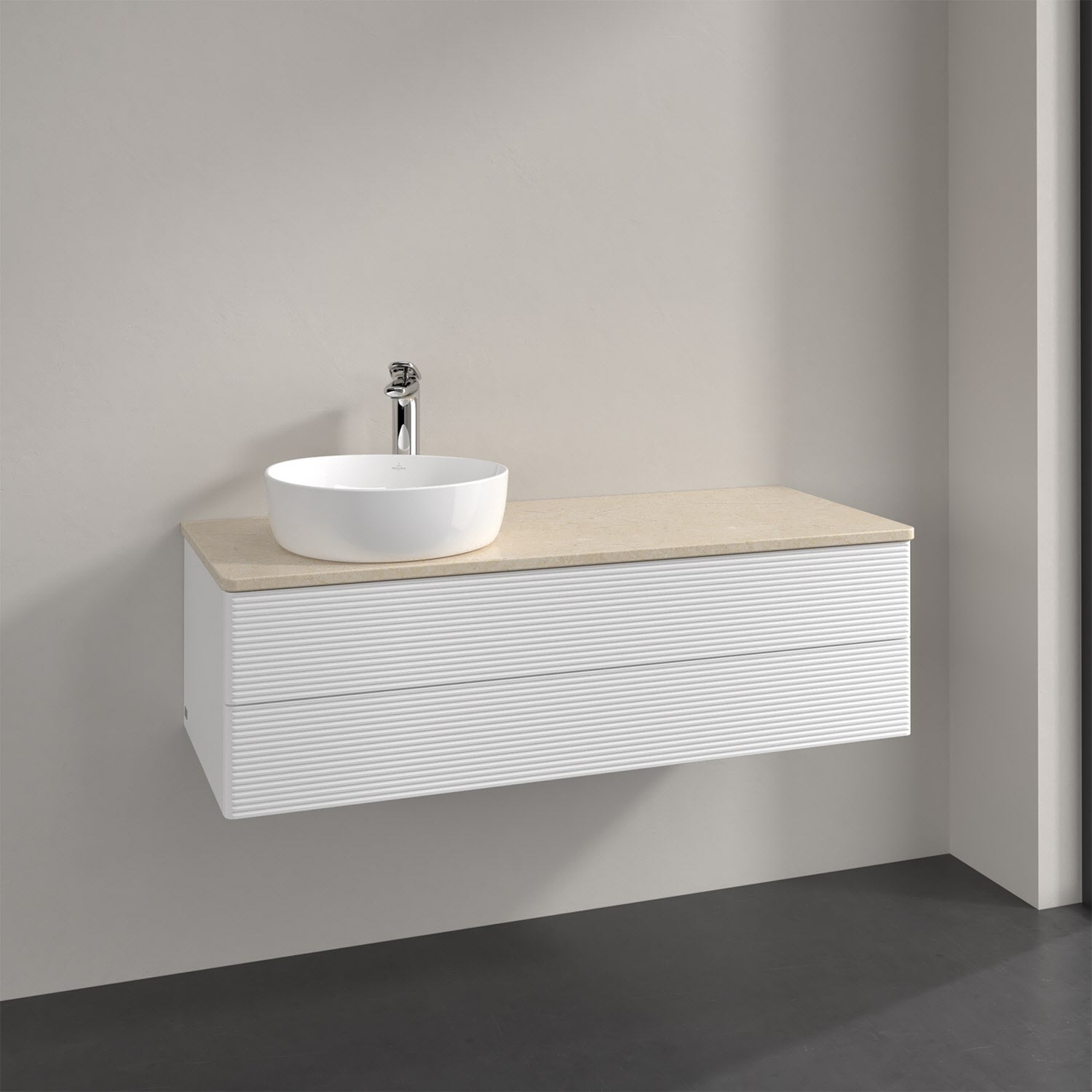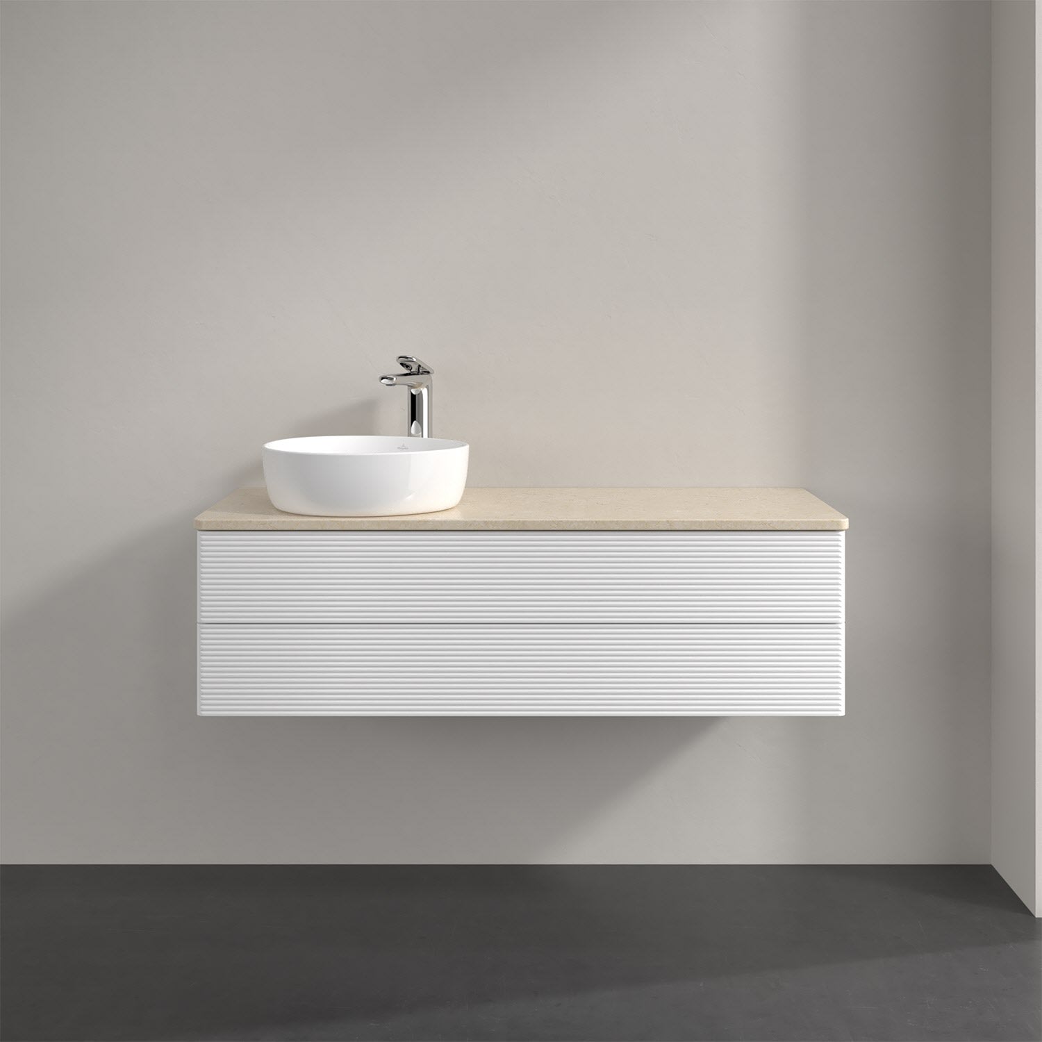 Villeroy & Boch Antao Waschbeckenunterschrank, 120 x 19 cm, 2 Auszüge, Fronten mit Struktur, mit Hahnloch, für Waschtisch links