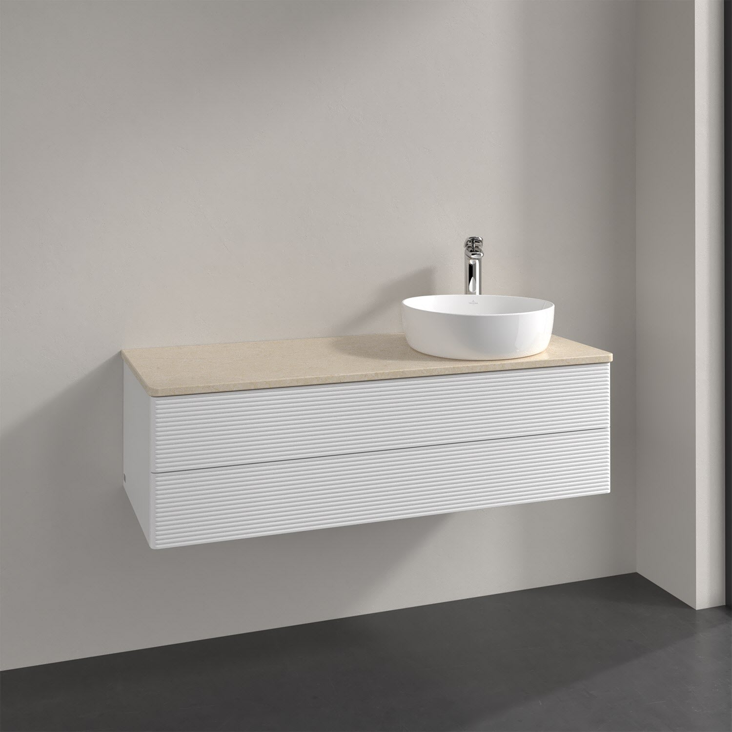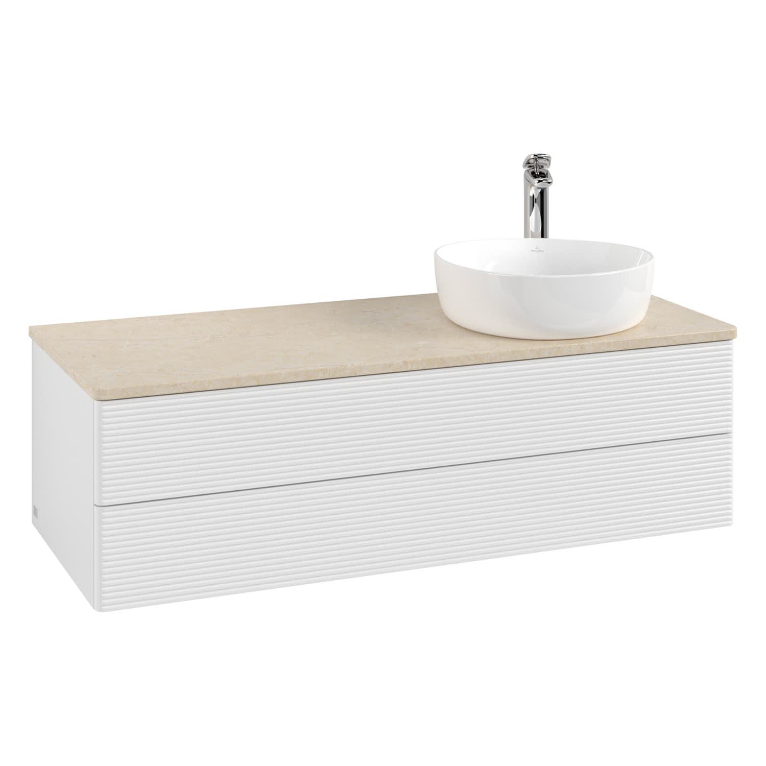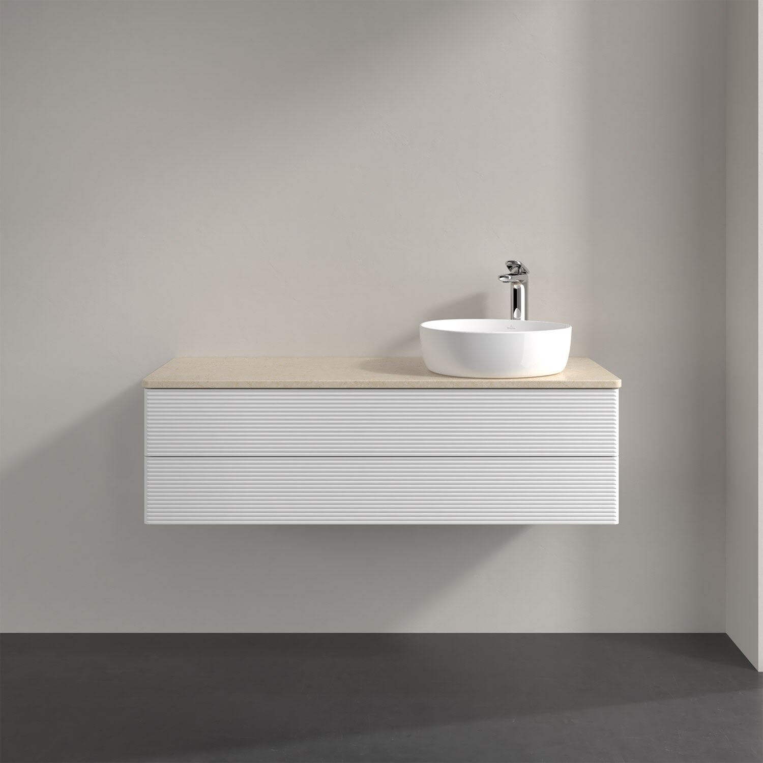 Villeroy & Boch Antao Waschbeckenunterschrank, 120 x 19 cm, 2 Auszüge, Fronten mit Struktur, mit Hahnloch, für Waschtisch rechts