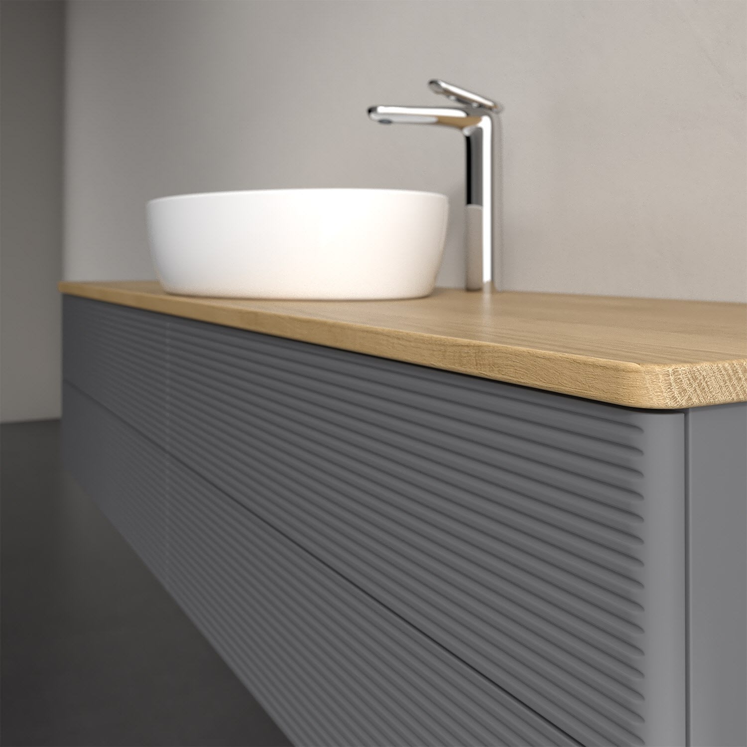 Der wandhängende Antao Waschtischunterschrank bietet mit seinen vier Auszügen und seiner erstaunlichen Größe viel Platz zum Verstauen von Utensilien im Badezimmer. Dank des mittig platzierten Aufsatzwaschtischs gibt es seitlich weiteren Platz für Handtücher, Seifenspender & Co. auf der Waschtischplatte. Inspiriert von der Natur überzeugt der Unterschrank auch optisch mit sanfter Formsprache und abgerundete Kanten. Die grifflosen Auszüge mit strukturierter Front sind mit der Push-to-Open Funktion ausgestattet und verfügen über einen Antirutschboden, damit Utensilien sicher verstaut werden können. Mit seiner Vollauszug- und Selbsteinzug-Funktion ist der Schrank praktisch und leicht zu bedienen. Qualität von Villeroy & Boch! Für eine besonders leichte Pflege sorgt die mehrschichtig deckend lackierte Oberfläche. Bei der Ausführung in Massivholz wird dank des verarbeiteten Massivholzes jedes Möbel zu einem Unikat, das sich durch das lebendige Naturmaterial durch seine einzigartige Struktur und Maserung auszeichnet.