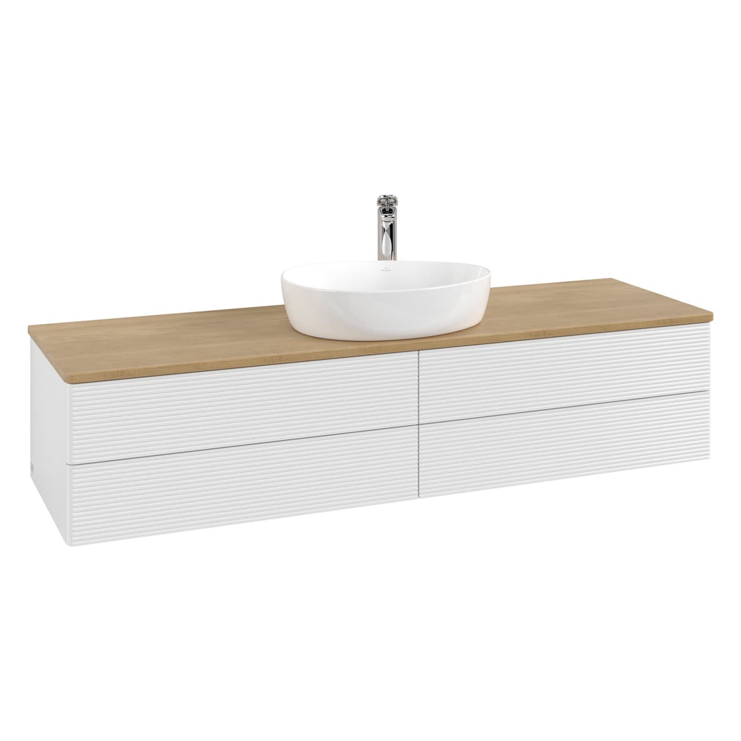 Villeroy & Boch Antao Waschbeckenunterschrank, 160 x 19 cm, 4 Auszüge, Fronten mit Struktur, mit Hahnloch, für Waschtisch mittig