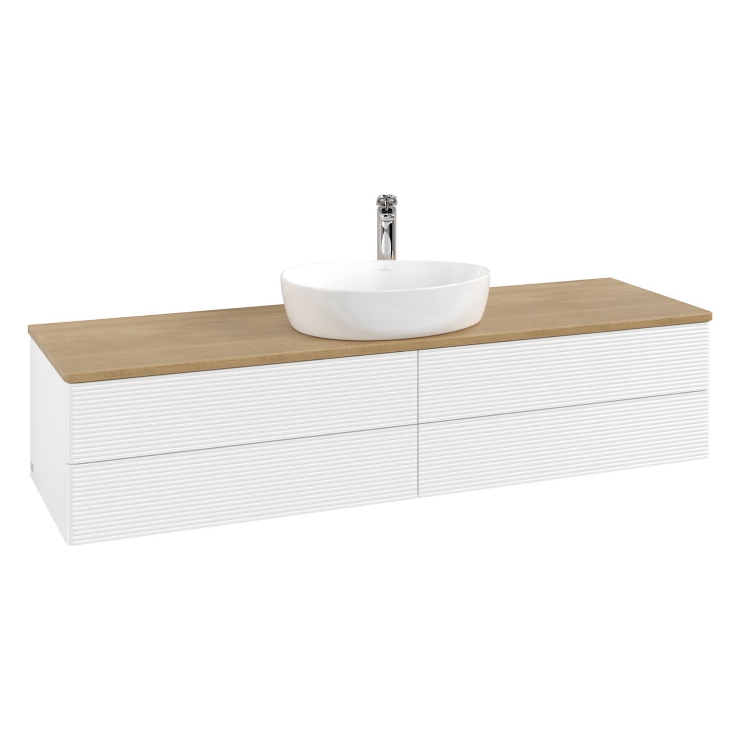 Villeroy & Boch Antao Waschbeckenunterschrank, 160 x 19 cm, 4 Auszüge, Fronten mit Struktur, mit Hahnloch, für Waschtisch mittig