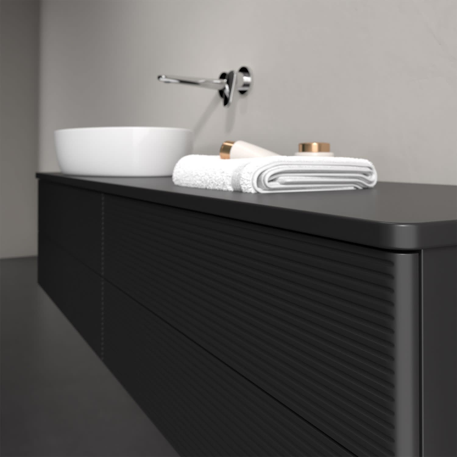 Der wandhängende Antao Waschtischunterschrank bietet mit seinen vier Auszügen und seiner erstaunlichen Größe viel Platz zum Verstauen von Utensilien im Badezimmer. Dank des seitlich platzierten Aufsatzwaschtischs gibt es daneben weiteren Platz für Handtücher, Seifenspender & Co. auf der Waschtischplatte. Inspiriert von der Natur überzeugt der Unterschrank auch optisch mit sanfter Formsprache und abgerundete Kanten. Die grifflosen Auszüge mit strukturierter Front sind mit der Push-to-Open Funktion ausgestattet und verfügen über einen Antirutschboden, damit Utensilien sicher verstaut werden können. Mit seiner Vollauszug- und Selbsteinzug-Funktion ist der Schrank praktisch und leicht zu bedienen. Qualität von Villeroy & Boch! Für eine besonders leichte Pflege sorgt die mehrschichtig deckend lackierte Oberfläche.
