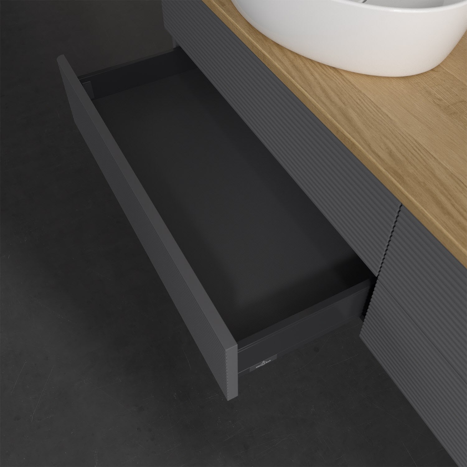 Villeroy & Boch Antao Waschbeckenunterschrank, 160 x 19 cm, 4 Auszüge, Fronten mit Struktur, mit Hahnloch, für Waschtisch links