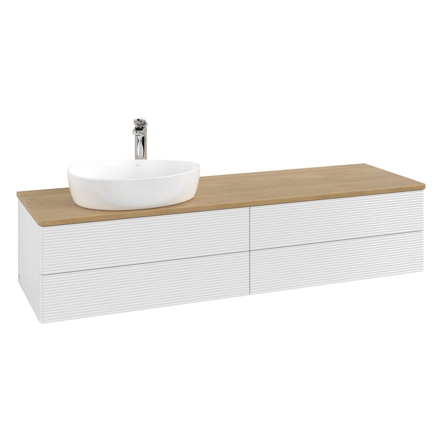 Villeroy & Boch Antao Waschbeckenunterschrank, 160 x 19 cm, 4 Auszüge, Fronten mit Struktur, mit Hahnloch, für Waschtisch links