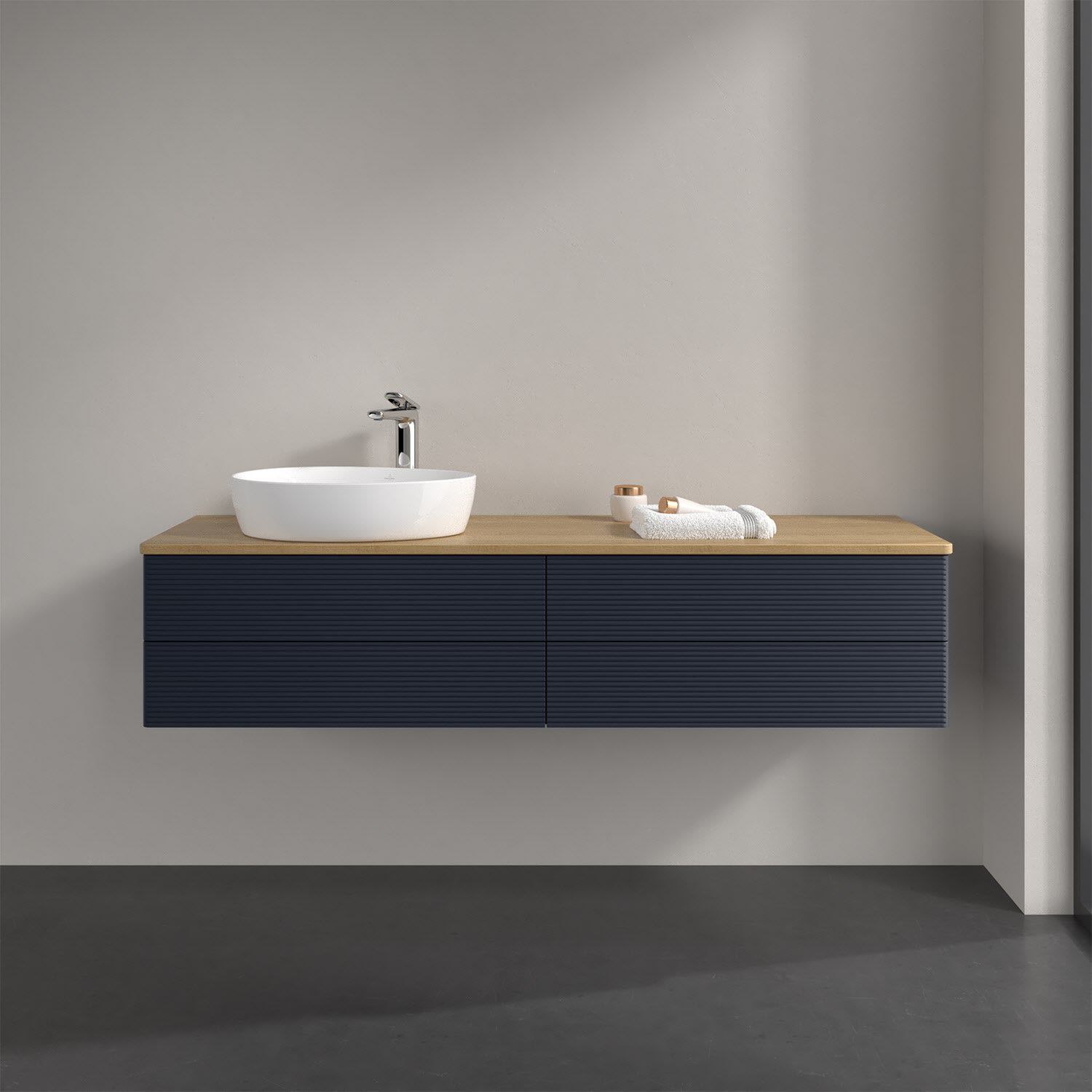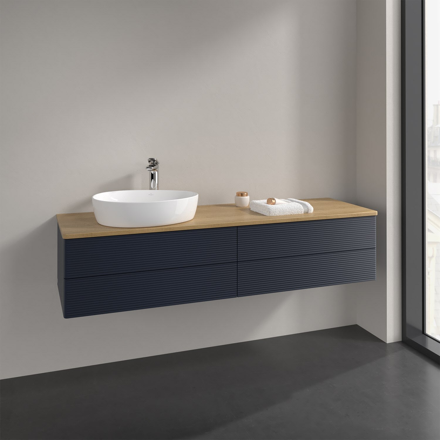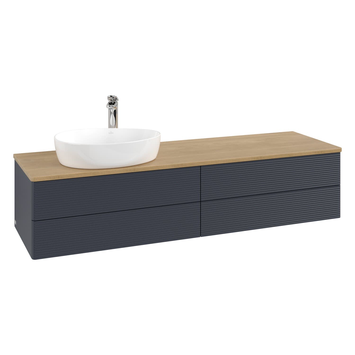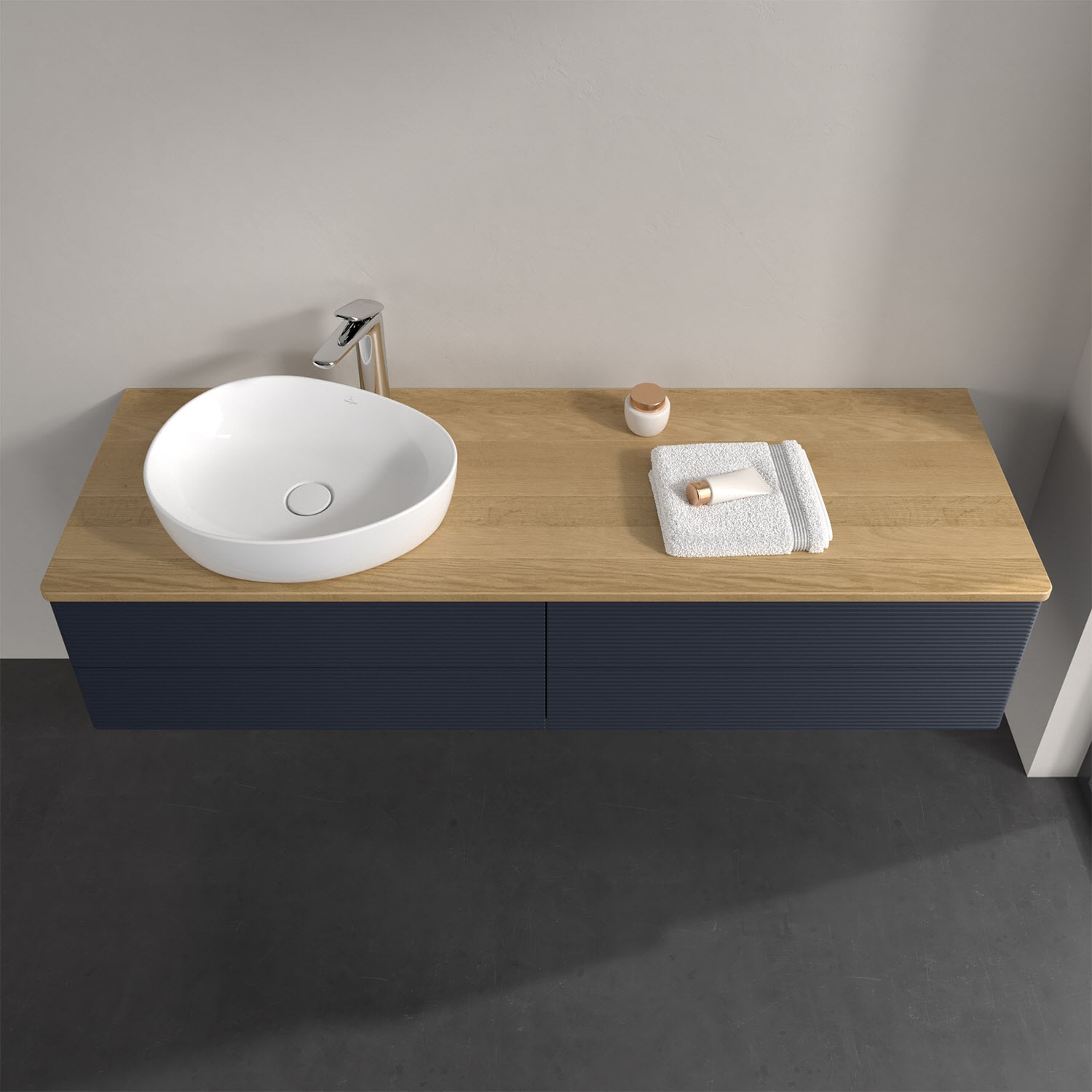 Villeroy & Boch Antao Waschbeckenunterschrank, 160 x 19 cm, 4 Auszüge, Fronten mit Struktur, mit Hahnloch, für Waschtisch links