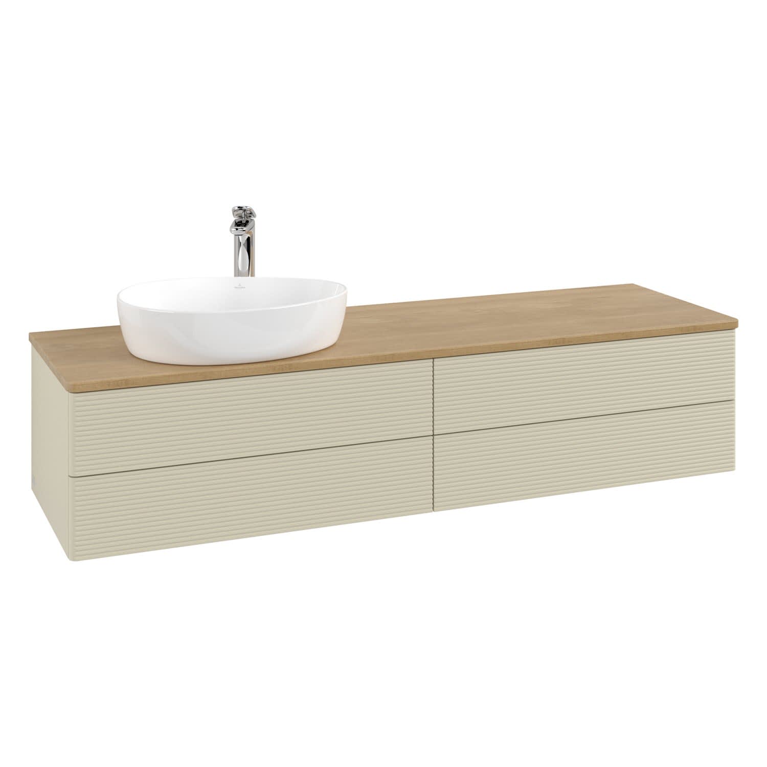 Villeroy & Boch Antao Waschbeckenunterschrank, 160 x 19 cm, 4 Auszüge, Fronten mit Struktur, mit Hahnloch, für Waschtisch links